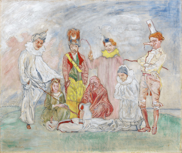 Fra le molte interessanti proposte contenute nel bel catalogo di Arte Moderna, in asta il 31 maggio 2016, spicca un’opera del pittore belga James Ensor. Le sue scelte iconografiche, non convenzionali, come maschere, teschi, scheletri e varie personificazioni del “Male” si incontrano sulle sue tele, mostrando l’assurdità dell’esistenza umana. Uno splendido esempio è dato da Baptême des masques, 1925/’30 in asta da Dorotheum, con stima compresa fra i 300.000 e i 500.000 Euro. Si tratta di una delle due varianti della composizione con lo stesso titolo, ispirata da un evento reale, una festa familiare in costume. Lo stesso Ensor è al centro dell’opera. Questa scena, documentata da una fotografia dell’epoca, non è dunque un’invenzione, ma una trasposizione in pittura di un gruppo di amici dell’Artista, travestiti con varie maschere. Dell‘’opera „Baptême des masques“ esistono due versioni successive; l’opera proposta da Dorotheum è quindi una nuova esaltante scoperta.
