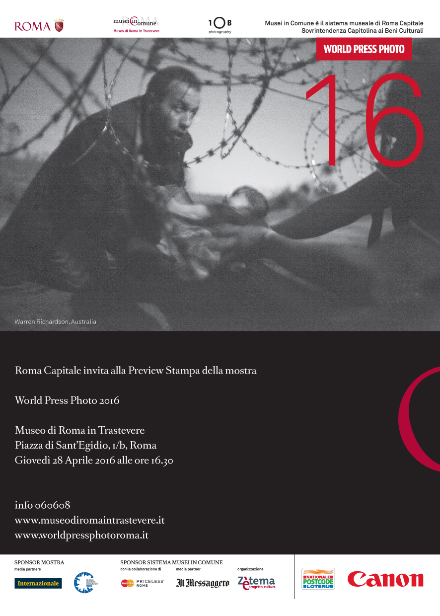 World Press Photo 2016 è promossa da Roma Capitale – Sovrintendenza Capitolina ai Beni Culturali, in collaborazione con 10b photography e la World Press Photo Foundation di Amster- dam. Organizzazione e servizi museali sono di Zètema Progetto Cultura.