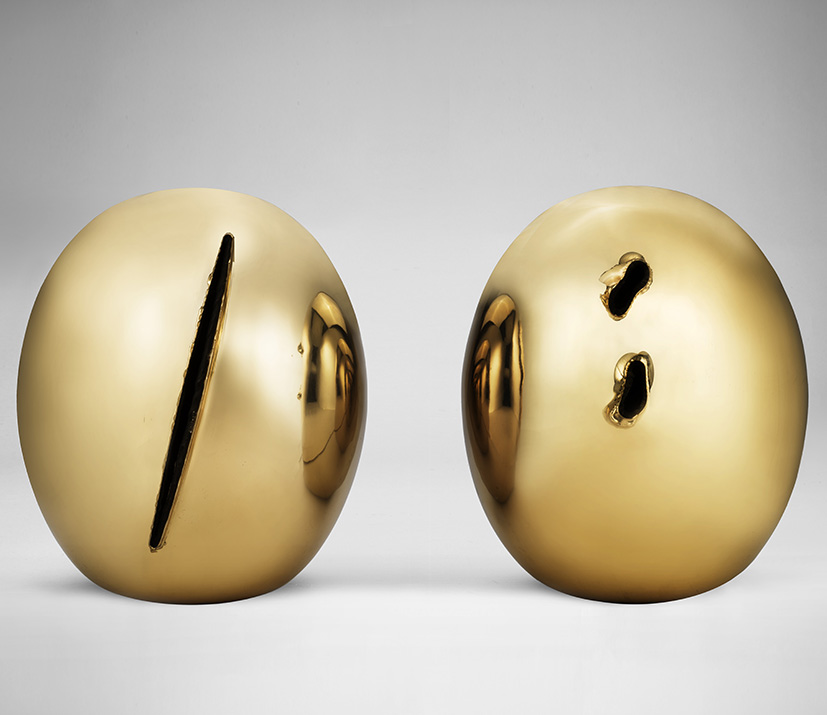 coppia di sculture in bronzo lucidato, h cm 27 ciascuna