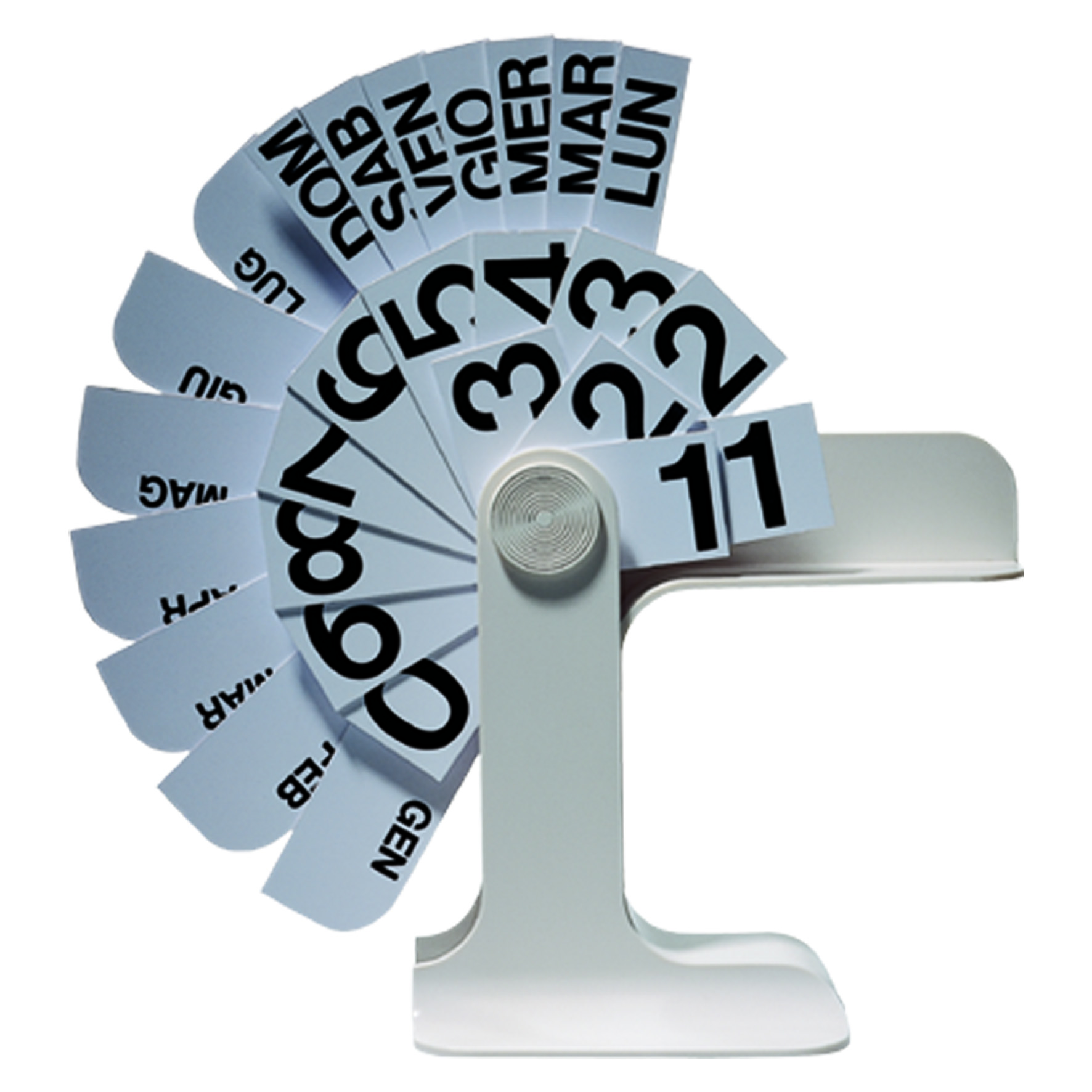 Le opere scelte, nella loro disposizione, suggeriscono alcune tematiche: Ritmi (Balla, Cambellotti, Ontani, Paolini, Camoni, Romualdi, Mayr, Patella); Oggi, Domani (Boetti, Ceroli, Mattiacci, Spinelli); Giornate di lavoro (Opalka, Pietrella, Adami, Blank, Giovannoni); Date (On Kawara, Vezzoli, Darboven, Comani); Date speciali (De Dominicis, Closky, Albani, Sebregondi, Bertozzi&Casoni, Pignotti, Fois); Calendari (Boetti, Novelli, Miccini, Ori, Ghirri, Abate, Mambor, Mari, Cattelan, Neuenschwander, Camoni); Diari (Breakwell, Rubio, AOS); Passaggi (Vaccari, Vautier, Baruchello, Benetta); 24 ore (Almond, Shemilt & Partridge, Camporesi).