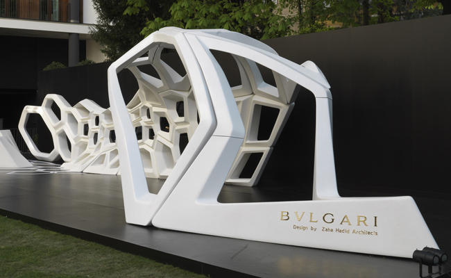 Per l’occasione, nel cortile del museo è presente anche una grande installazione realizzata per Bulgari da Zaha Hadid, scomparsa di recente, ispirata al celebre motivo del Serpente, metafora di trasformazione e rinnovamento.
