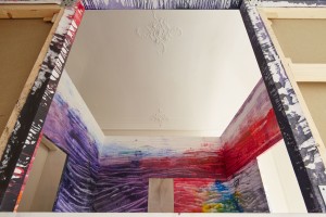 #FILMBOX01 si presenta come un grande cubo di tele grezze sul lato esterno, completamente dipinto al suo interno. Le quattro finestre e la porta del cubo, permettono allo spettatore di vivere una esperienza pittorica tridimensionale: l’installazione, nata in dialogo con lo spazio, rompe la bidimensionalità della tela attraverso la qualità fluida e trasparente che Zabetta riesce a dare alla materia.