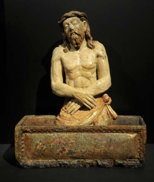 Il linguaggio e lo stile di questa Imago Pietatis rimandano alla tradizione figurativa lombardo-veneta di fine Quattrocento e primo Cinquecento. L’iconografia di origine bizantina del Cristo passo, in posizione frontale, stante nel sepolcro, con gli occhi chiusi e le braccia incrociate, era infatti assai diffusa in area lagunare, come testimoniano le numerose rappresentazioni in celebri dipinti e rilievi rinascimentali. Colpiscono di questa scultura lignea, di cui si è mantenuta buona parte della policromia originale, la pronunciata muscolatura, il volto compatto e la dimensione reale e concreta della figura, che emerge asimmetricamente e con forza dal sarcofago. Affinità compositive e anatomiche si trovano nelle opere del medesimo soggetto di Pietro Bussolo, oltre che in sculture lombarde per mano di artisti come Giulio Oggioni e Battista da Saronno.