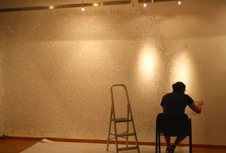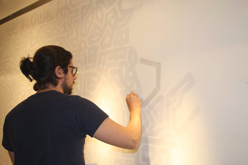 Innanzitutto volevo ringraziare CEARCAL e la curatrice Ana Blanco che hanno creduto nel mio progetto e mi hanno dato la possibilità di realizzare la mia prima personale. Quando vidi la sala ad ottobre ne rimasi subito colpito: uno spazio di 100 metri quadri in cui avevo la possibilità di poter creare l’ambiente che volevo. E’ da molto tempo che penso a come realizzare la mia prima mostra individuale e me la sono sempre immaginata con qualcosa in più, non solo con quadri appesi a delle pareti bianche e quel qualcosa sono i labirinti che ho dipinto sulle pareti che avvolgono completamente lo spettatore quando entra.