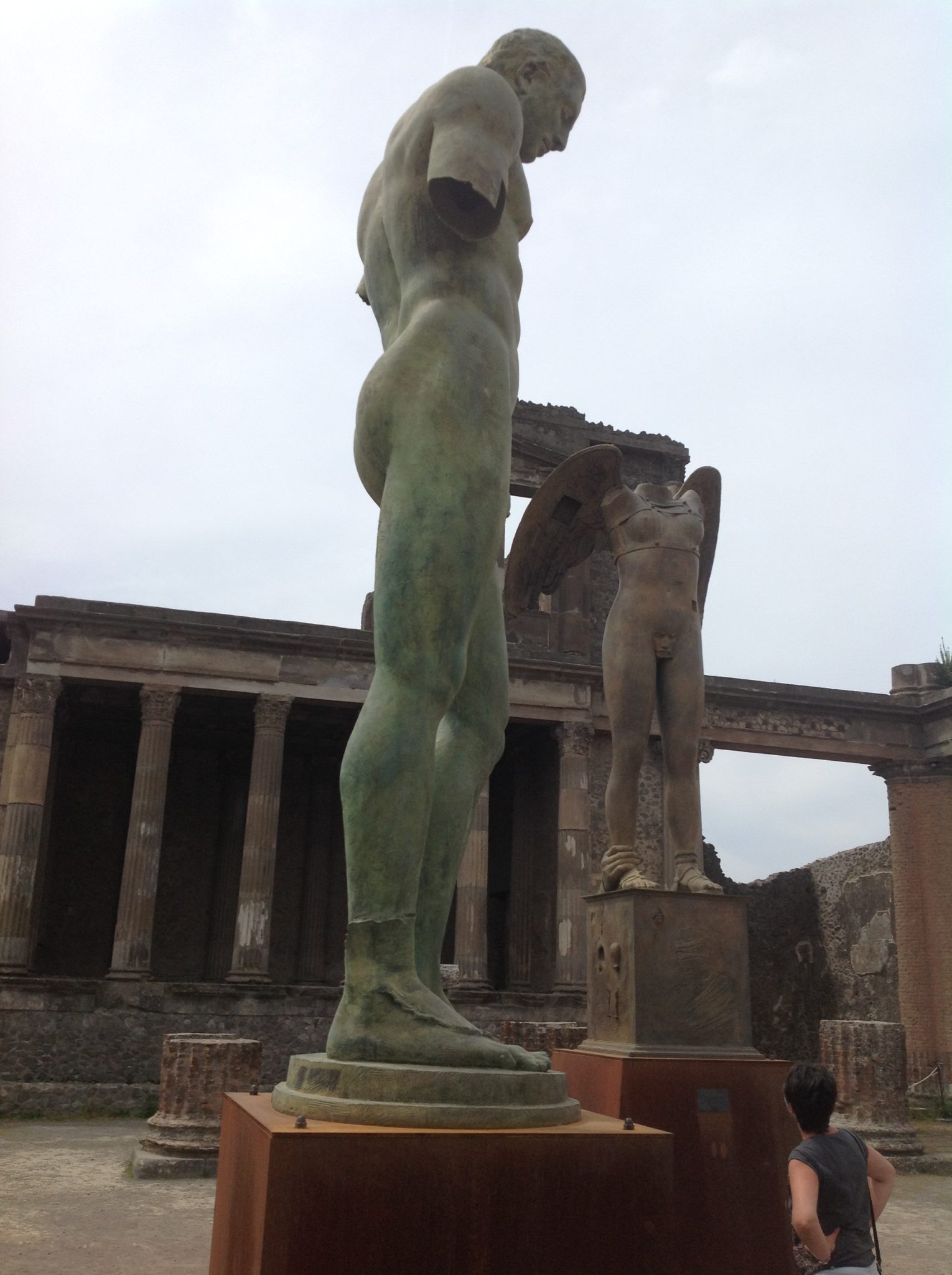 Per quanto riguarda l’approccio di Mitoraj, credo che lui volesse contrastare l’odierna tendenza all’accantonamento del passato classico nell’estetica odierna. Credo che questo sia stato l’elemento fondante non soltanto della realizzazione delle sue opere, ma anche del suo desiderio di questo tipo di collocazione: mi parlava sempre di questa sua visione relativa al connubio tra i suoi lavori e i luoghi emblematici della classicità del nostro paese e del mondo europeo, e mi diceva che le opere nella loro bellezza – che lui raggiungeva facilmente – chiuse in un museo o in una casa perdono la forza che avrebbero se venissero poste nei luoghi per cui appaiono quasi connaturate. E bisogna dire che le opere collocate qui a Pompei potrebbero perfino indurre molti degli spettatori a pensare che esistessero sin da prima della distruzione della città.