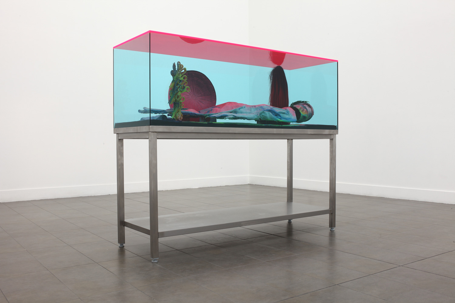 Folkert De Jong lavora principalmente con materiali isolanti, come poliuretano, polistirolo e plastiche colorate, portando avanti una precisa ricerca cromatica che punta su colori brillanti e illuminati al neon. La scelta di sigillare le sculture in teche di plexiglass esprime il grande interesse dell’artista per lo sviluppo della museotecnica nella storia dell’arte nonché per il significato intrinseco delle teche come strumento di conservazione di un corpo per garantirne l’immortalità.