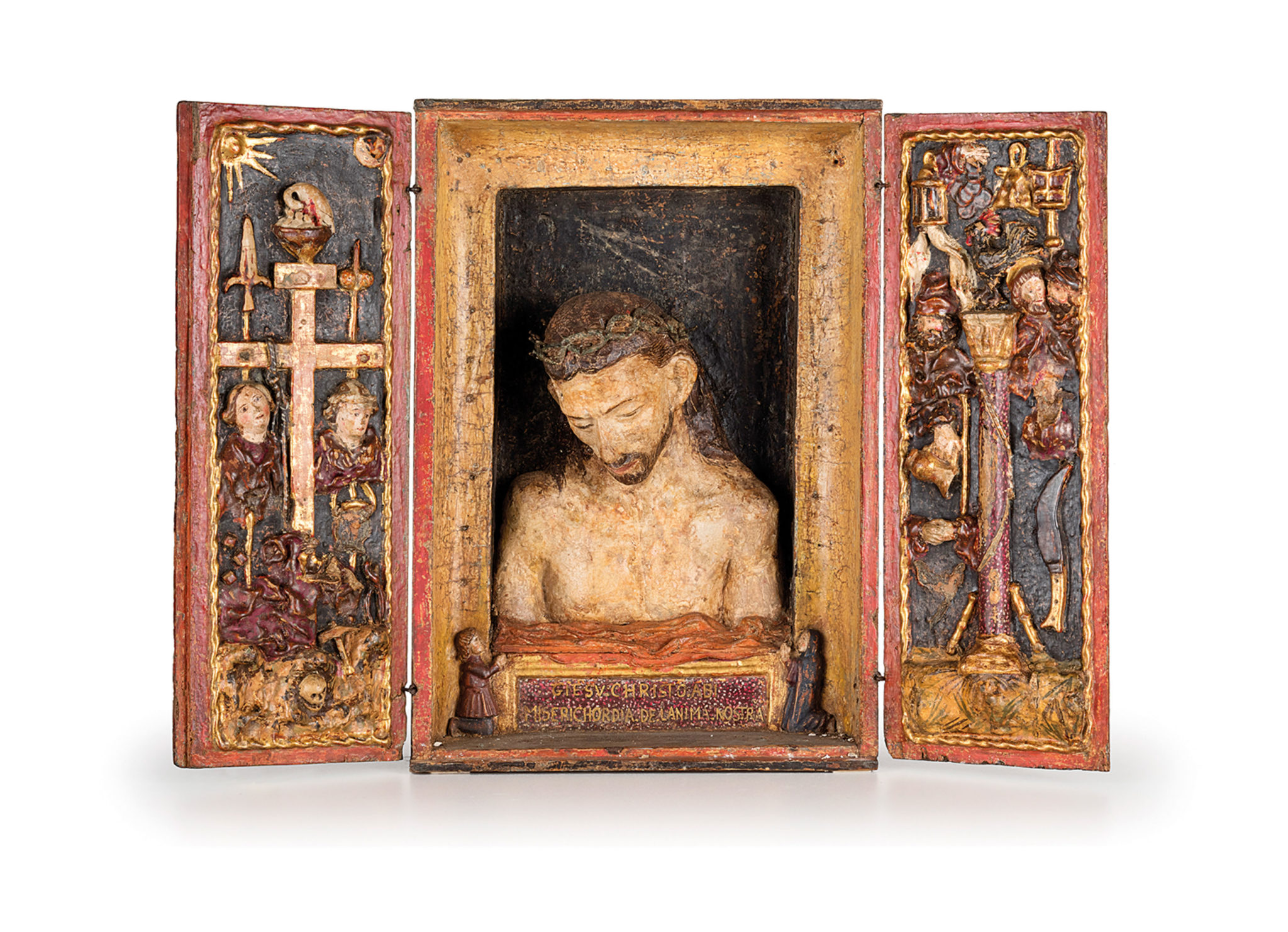 Infine, tra le opere della collezione Gallino, ricordiamo l’affascinante altarolo (lotto 703) da riferire a Vincenzo di Antonio Frediani per la parte dipinta (documentato fra il 1481 al 1505) al lucchese Matteo Cividali (Lucca, 1436 – 1501) per quella scultorea: raffigura Cristo in Pietà con due donatori e gli strumenti della Passione (all’interno) e Santa Caterina d’Alessandria e Santa Lucia (all’esterno delle ante). La stima oscilla tra i 40.000 ed i 50.000 euro.