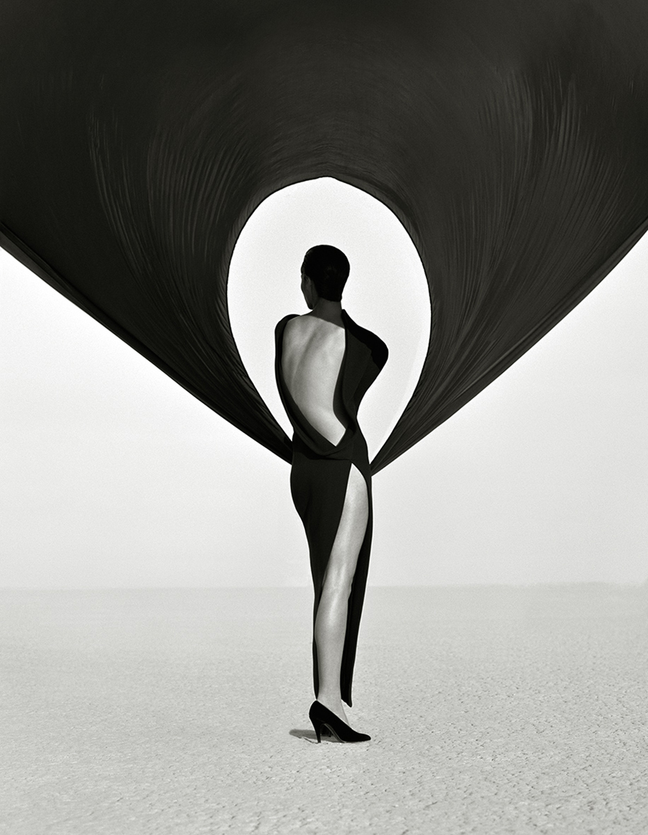L’esposizione comincia con alcuni scatti di nudo, che offrono pregevoli citazioni. Un sinuoso corpo femminile accarezzato dall’ombra dei ricami in pizzo rimanda all’erotismo raffinato di Lucien Clergue. L’influenza del maestro Richard Avedon si avverte nei teli gonfiati dal vento che avvolgono eleganti curve femminili. E poi i solidi corpi muscolosi, che paiono un omaggio a Robert Mapplethorpe. E parlando di Mapplethorpe, l’attrazione per il nudo non è l’unico elemento ad accomunare Herb Ritts con il principe della fotografia erotica statunitense: entrambi rimasero infatti vittime dell’AIDS,il primo nel 2002 e il secondo nel 1989.