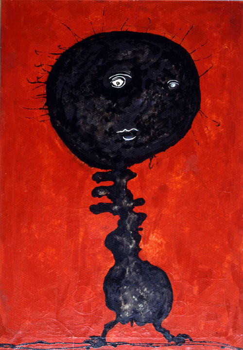 Baj creò, da un magma primordiale, questa creatura mutante che prese anima e corpo nella sua riflessione, non solo come veicolo di amara ironia ma anche come metafora di timori profondi, di paure inconsce: il rischio contingente di una guerra nucleare o, più in generale, la paura dell’ignoto, del cosmo infinito, di ciò che si nasconde nell’ombra, al di là dei confini dell’esistenza.