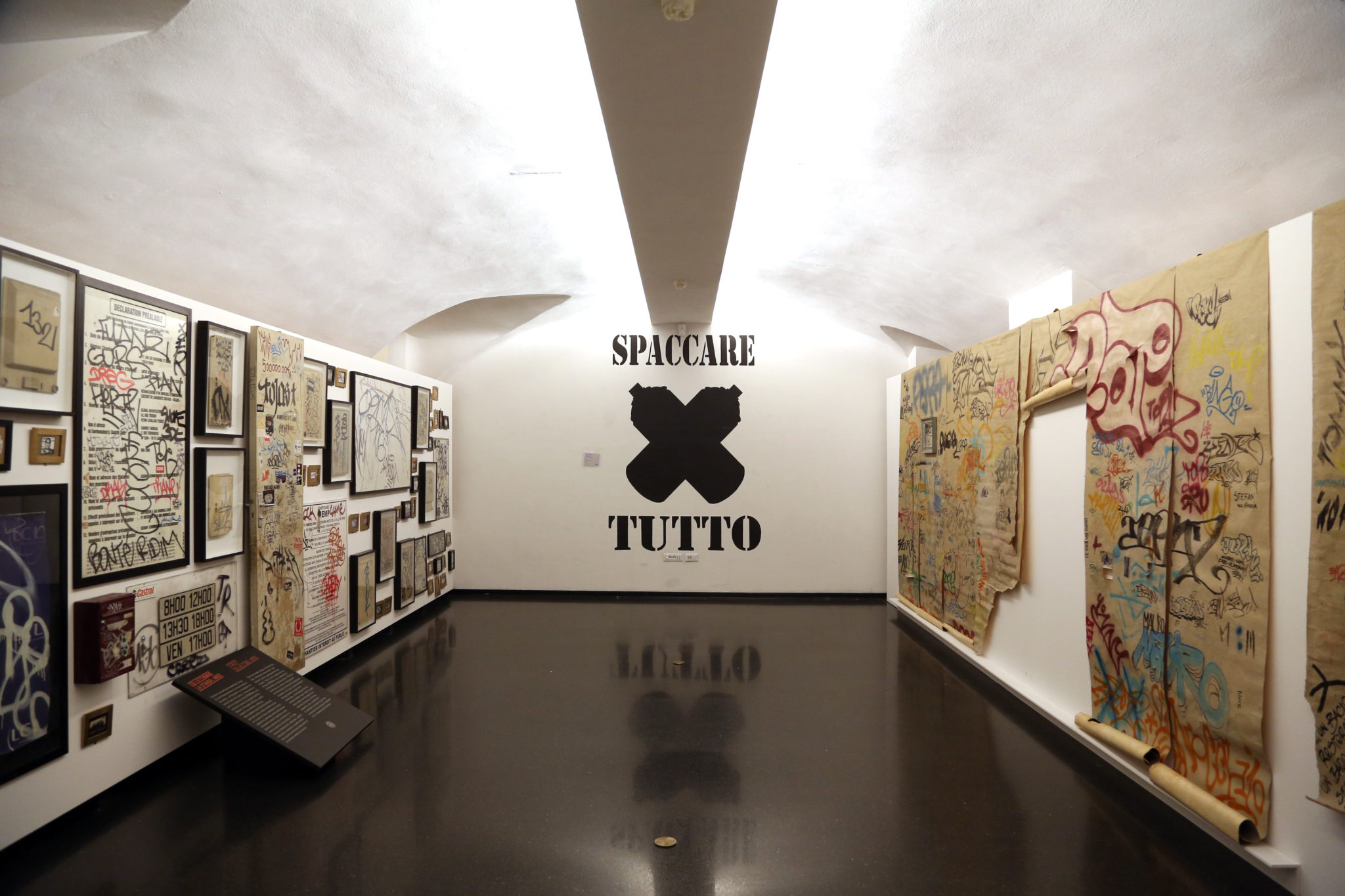 Una collezione di opere e autentici “strappi” di muri delle città mettono in scena le diverse forme di graffitismo e writing, ponendo a confronto le esperienze nazionali – come quelle del mai dimenticato artista fiorentino Tommaso Tozzi, uno dei primi italiani a dipingere graffiti sui muri di Firenze -, con quelle europee come i graffiti Punk olandesi. In omaggio alla città di Bologna, fra le principali capitali italiane dell’Urban Art e del Graffiti writing, in questa sezione lavori del duo Cuoghi Corsello (Spaccare tutto, intervento site specific, 2016), di Rusty e di Dado accanto a video, installazioni, fotografie di graffiti writers e artisti considerati tra i migliori rappresentanti di questo genere dal 2000 al 2010 come Daniele Pario Perra (Anarchetiquette. God shave the queen, ex Centrale del latte Catania, Bologna), di Steve Raviez (Fotografie della scena graffiti Punk di Amsterdam, 1979 ca., Amsterdam, Dutch Graffiti Collection), di AREK (Collezione privata di tags, Parigi, 1990).