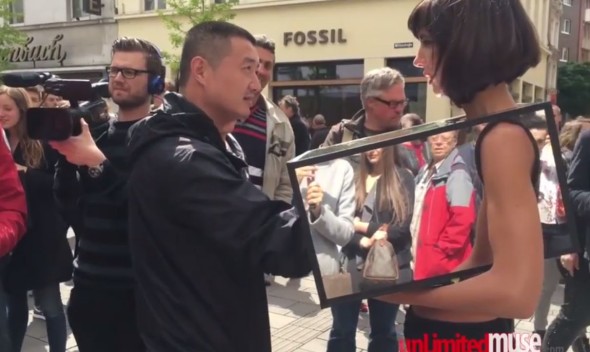 Se questa è arte… (nelle foto le performance di Londra e quella precedente a Dusseldorf dove l’artista si faceva palpare il senso per 30 secondi…)