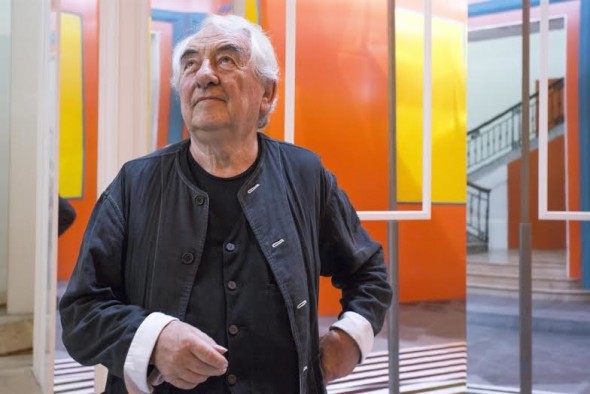 Daniel Buren (Boulogne-Billancourt, 1938) si forma a Parigi ed esordisce come pittore presso il Salon de la jeune peinture. L’artista realizza le sue opere su differenti supporti e materiali tanto da poter essere considerato anche uno scultore. Negli anni Novanta l’utilizzo di pannelli colorati e superfici specchianti, attesta la capacità dell’artista di saper intervenire in ampi spazi attraverso installazioni complesse. Negli anni Duemila espone presso il Centre Pompidou di Parigi con la mostra Le musée qui n’existait pas in cui realizza un labirinto ricco di colori e specchi. Buren ha partecipato alla Biennale di Venezia e ha realizzato la sua prima opera permanente al Macro di Roma.
