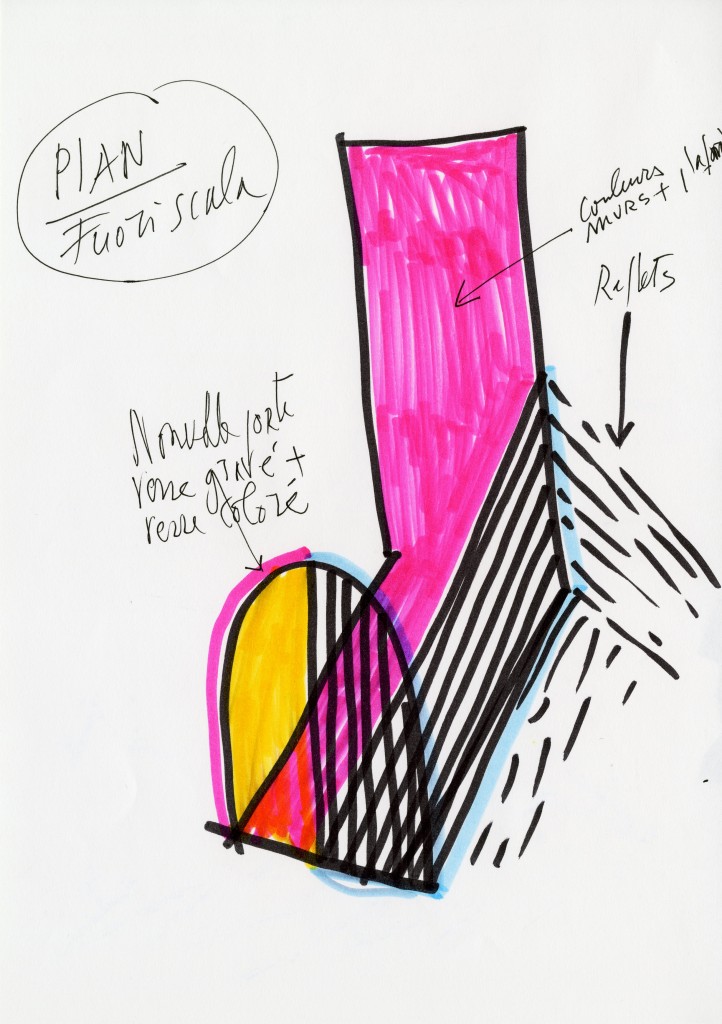 «Quando arrivo a Napoli in aereo, durante l’atterraggio guardo sempre dall’alto il mio intervento per l’Arin. È riconoscibile e mi sembra ben conservato. Ora vorrei che in città restasse un altro segno del mio lavoro: ovvero questo che ho realizzato nell’atrio del Madre. Lo regalerei volentieri ai napoletani» D. Buren