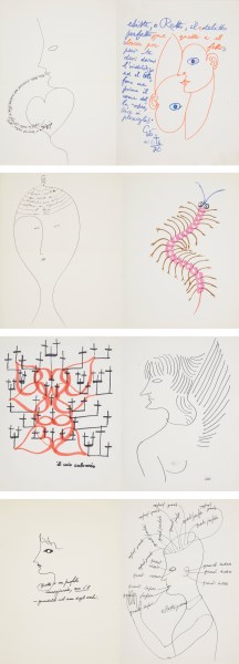 Lotto di otto disegni e lettere autografe inviate a Giovanni Ratto.