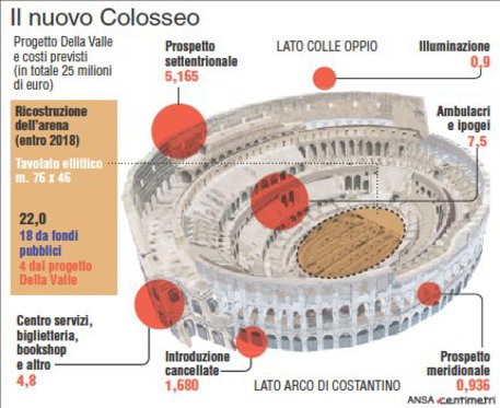 Ora partirà la seconda fase, sempre finanziata da Della Valle, con il restauro degli ipogei. Intanto Franceschini annuncia che i lavori per la copertura dell’arena dell’anfiteatro, finanziati dallo Stato con 18 milioni di euro, “Dovrebbero essere completati in tre anni (dallo stanziamento dei fondi,ndr) dunque nel 2018”.