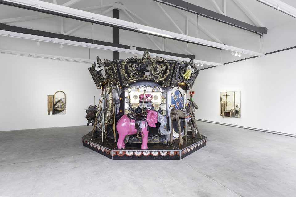 Man mano che percorriamo questo sentiero infernale, ricadiamo automaticamente in una condizione voyeuristica che ci permette di girare intorno alle opere, di osservarne ogni piccolo dettaglio, di assistere alle scene da vari punti di vista senza esserne coinvolti direttamente. Se non addirittura di prendere parte fisicamente all’orrore, quando questo viene camuffato come un gioco: il mostruoso carosello dal titolo “The Merry-Go-World or Begat by Chance and the Wonder Horse Trigger” (1991-94) con i suoi 8 settori corrispondenti ad alcune aree disagiate del mondo, ognuna identificata da un inquietante animale-simbolo, esprime la casualità del nascere in condizioni estreme di povertà e degrado, lontano dal facoltoso Occidente. Una piccola tigre malconcia e denutrita, dallo sguardo vitreo e e le fauci spalancate in un ruggito a metà tra la paura e l’impulso bestiale di azzannare, sembra implorarci di varcare la soglia fin dentro la pancia oscura della giostra per scoprire cosa si cela all’interno, ma solo dopo avere girato la ruota della fortuna.