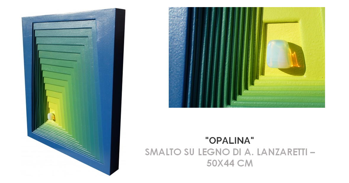 Un altro degli artisti presenti è Alberto Lanzaretti, autore di quadri che si possono osservare ma anche toccare, grazie agli eleganti giochi di volume formati dai pannelli in legno colorato.