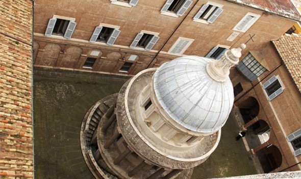 Sulle pendici del Gianicolo, antico colle di Roma, all’interno del complesso di San Pietro in Montorio – oggi parte della Reale Accademia di Spagna – si trova un piccolo ma grande gioiello architettonico, il Tempietto del Bramante.