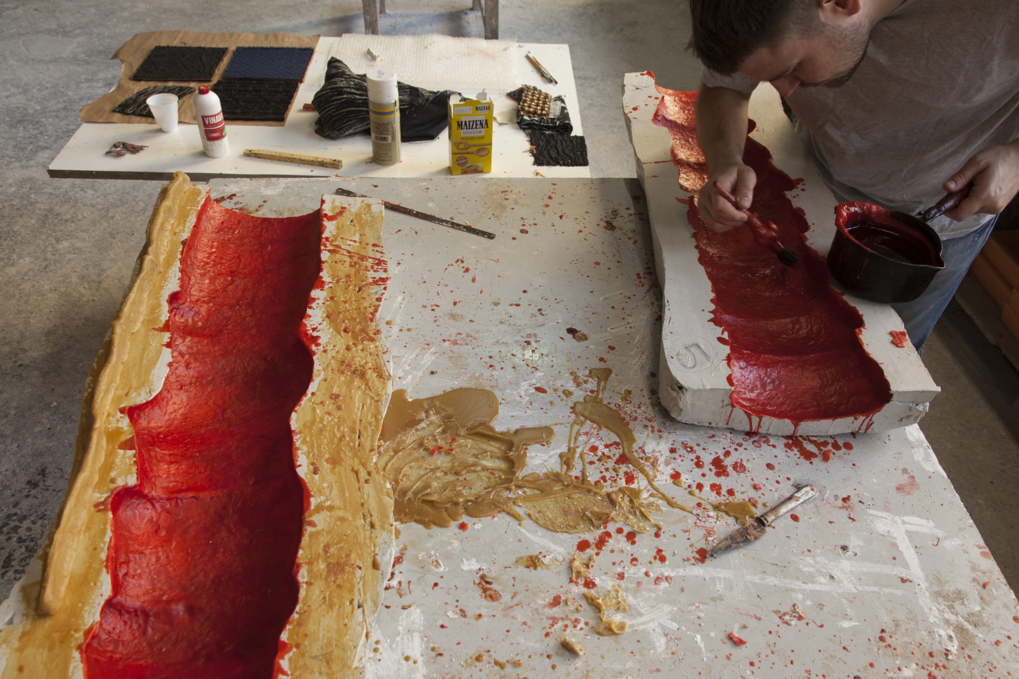 Dal poliuretano espanso, fino poi ad intervenire direttamente sul modello in cera, in una personale rielaborazione condotta con un approccio articolato e innovativo.