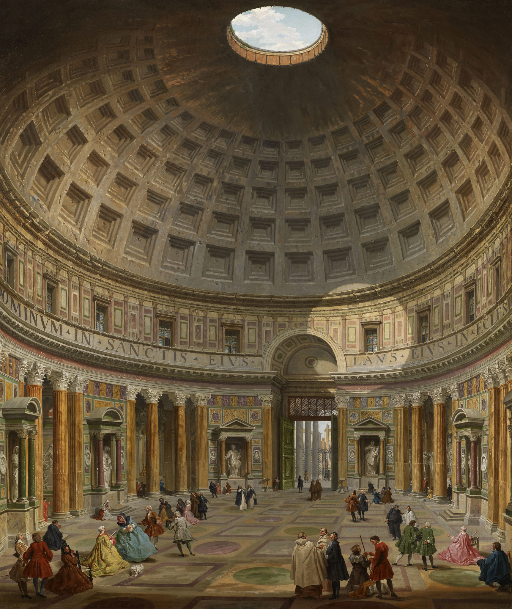 L’interno del Pantheon, Roma, guardando a nord dall’altare maggiore verso l’ingresso, oltre Piazza della Rotonda, olio su tela, 116,8 x 99 cm