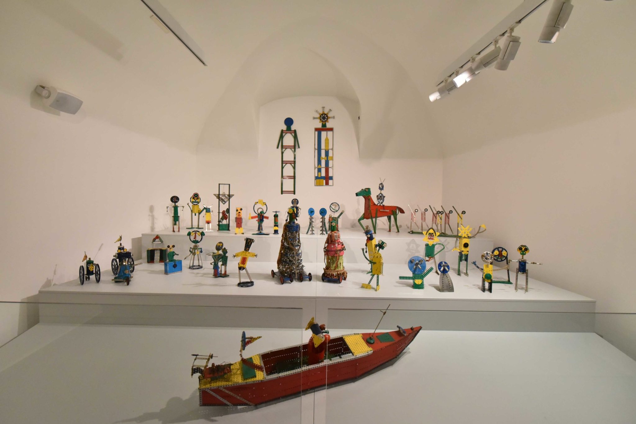Sono esposte cinquanta opere tra le più significative del maestro: dipinti e collage, esemplari dalle serie dei “mobili” e degli “specchi”, dei “meccani”, dei “generali” e delle “modificazioni”; oltre a trenta piccoli personaggi “in meccano” che costituiscono il Teatro di Ubu (1985) e l’installazione monumentale dell’Apocalisse (1978-83). La rassegna è dedicata al tema dell’ultracorpo nell’opera di Enrico Baj a partire dal 1951 fino al 1985. Passando attraverso i diversi periodi produttivi essa ricostruisce le trasformazioni e i cambiamenti di questa particolare “figura” sempre al centro della ricerca dell’artista milanese.