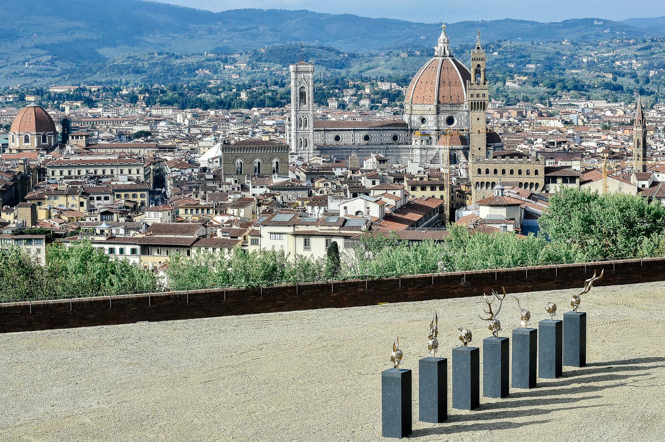 L’esposizione Jan Fabre. Spiritual Guards, è una delle più complesse e articolate mostra in spazi pubblici italiani realizzata dall’artista e creatore teatrale fiammingo. Curata da Melania Rossi e Joanna De Vos sotto la direzione artistica di Sergio Risaliti, l’esposizione si sviluppa tra Forte di Belvedere, Palazzo Vecchio e Piazza della Signoria, tre luoghi di eccezionale valore storico e artistico che presentano un centinaio di lavori realizzati da Fabre tra il 1978 e il 2016: sculture in bronzo, installazioni di gusci di scarabei, lavori in cera e film che documentano le sue performance.