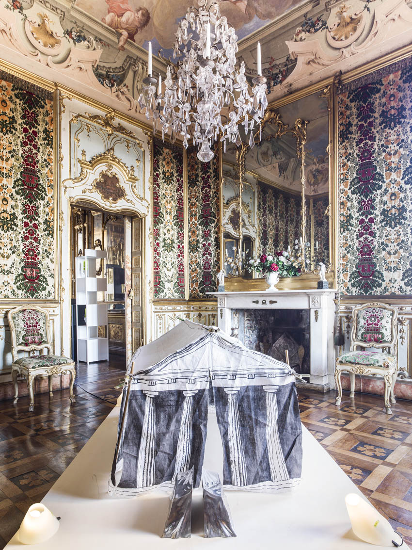 Lo splendore di Palazzo Terzi è il set dove ambientare un film che intreccia epoche diverse e personaggi inaspettati. Qui ogni oggetto è già un racconto, ogni dettaglio ogni pittura ogni stoffa è frutto di dettagli e stratificazioni che fanno pensare a tutto quello che è successo in quelle sale, alle persone che le hanno abitate a tutti gli incontri, i desideri, le attese, le paure, i segreti. I veri attori di questo teatro sono questi oggetti che come testimoni creano connessioni e ci lasciano immaginare storie di cui percepiamo le tracce e che chiunque può arricchire e trasformare con la propria immaginazione in altre storie che un po’ ci appartengono. “Incontri” aggiunge un ulteriore livello di lettura a quelli già presenti, non per arricchire ciò che è già denso di segni, decori e riferimenti ma per depistare in qualche modo la percezione, per trovare un’ulteriore chiave di lettura in grado di favorire un corto circuito tra la storia e il contemporaneo, tra lo spazio fisico e quello onirico dove tutto è possibile.