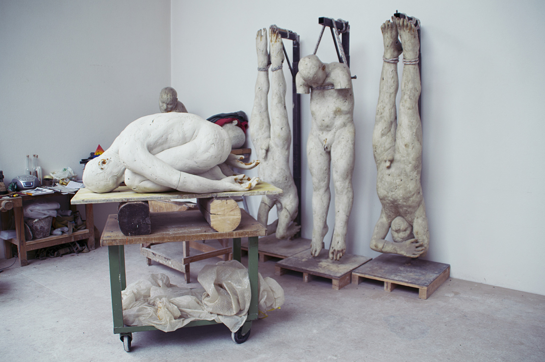 M.B.: Trovo l’utilizzo delle impalcature un dettaglio estremamente affascinante. Come è nata l’idea? E come gestisce i modelli per le sculture “ingabbiate”?