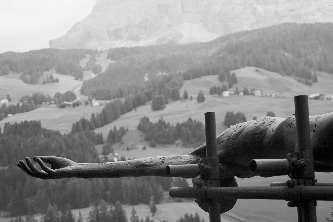 L.A.: La religione è un’altra grande tematica che appartiene a questi luoghi poiché quando ero bambino quasi tutti all’interno della mia comunità frequentavano la chiesa, e noi stessi siamo cresciuti con un forte senso religioso, dunque la spiritualità emerge nelle mie opere fin dalla mia infanzia. Poi, chiaramente si intraprendono altre direzioni e le tematiche si differenziano, ma il punto di partenza per me è stato quello. Personalmente mi è sempre piaciuto lavorare con le istituzioni religiose: a Innsbruck per esempio sono presenti quattro mie opere sulla facciata della Cappella di San Giorgio presso il Consiglio Regionale del Tirolo. Inoltre, spesso realizzo anche altari e adattamenti liturgici per le chiese. Purtroppo però, molte volte nel mio lavoro ho dovuto affrontare dei problemi dovuti al delicato rapporto tra arte e chiesa, e le mie opere sono state al centro di accese polemiche: l’ultimo caso è stato quello dell’“Ecce Homo”, opera installata di fronte al Monastero Wilten di Innsbruck, che una notte è stata manomessa da alcuni vandali i quali hanno tagliato le corde con cui erano appesi i corpi in bronzo, per fortuna senza recare danni eccessivi al materiale.