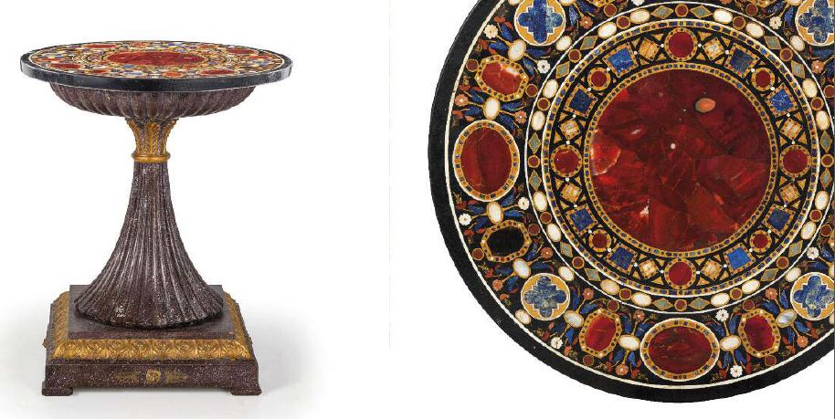 Da segnalare il bel cassettone a ribalta con alzata impiallacciato in legni vari del XVIII secolo, a “violino” ed intarsiato a motivi floreali, stimato 30.000 – 40.000 euro (lotto 461), la coppia di console napoletane in legno laccato e dorato della fine del XVIII a demi-lune e decoro floreale, ciascuna offerta a 4.000 – 6.000 euro (lotto 598), ed il piano circolare a decoro geometrico in marmi commessi policromi e pietre dure del XIX secolo, in catalogo con una valutazione di 8.000 – 12.000 (lotto 627).