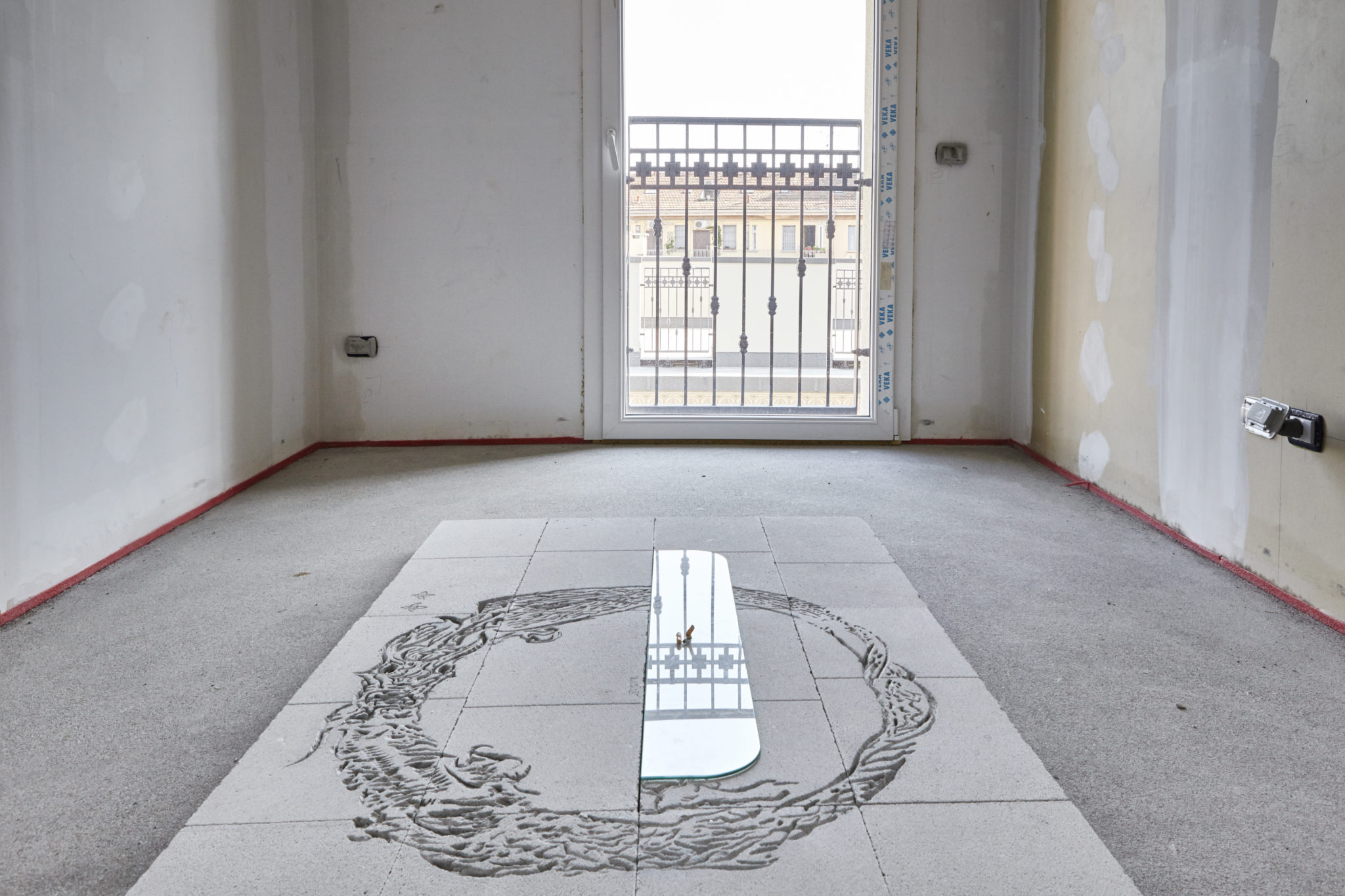Dal punto di vista dei visitatori, l’obiettivo di un’esperienza diretta della fruizione dell’opera arte può non essere del tutto raggiunto: la ristrettezza degli spazi, paradossalmente, sovraespone i lavori, come ricordano gli interventi di Diego Miguel Mirabella, poiché, pur avendo una visione maggiormente interagente dei lavori, rimangono comunque sulla soglia tra esistente ed esistito, mantenendo, a loro volta, il ruolo di abitatori, di invitati, di ospiti. I reali, futuri padroni di casa, invece, che ricorderanno, attraverso la riproduzione di immagini e alcuni lavori incastonati permanentemente nell’edificio, quel che è intercorso fra i muri degli appartamenti, potranno vivere l’opera giorno per giorno, in remoto, indirettamente, ma diventandone i secondi protagonisti immanenti. Lo scambio continuo tra artista e padrone di casa, ben evidente nel salotto dal cielo giallo di Giovanni Oberti, porterà l’uno a mettere continuamente in discussione pratica e autonomia estetica -dovendo scendere a compromessi- e l’altro a scoprire di persona una realtà, un tempo sovrapposta, ma integra e contingente.