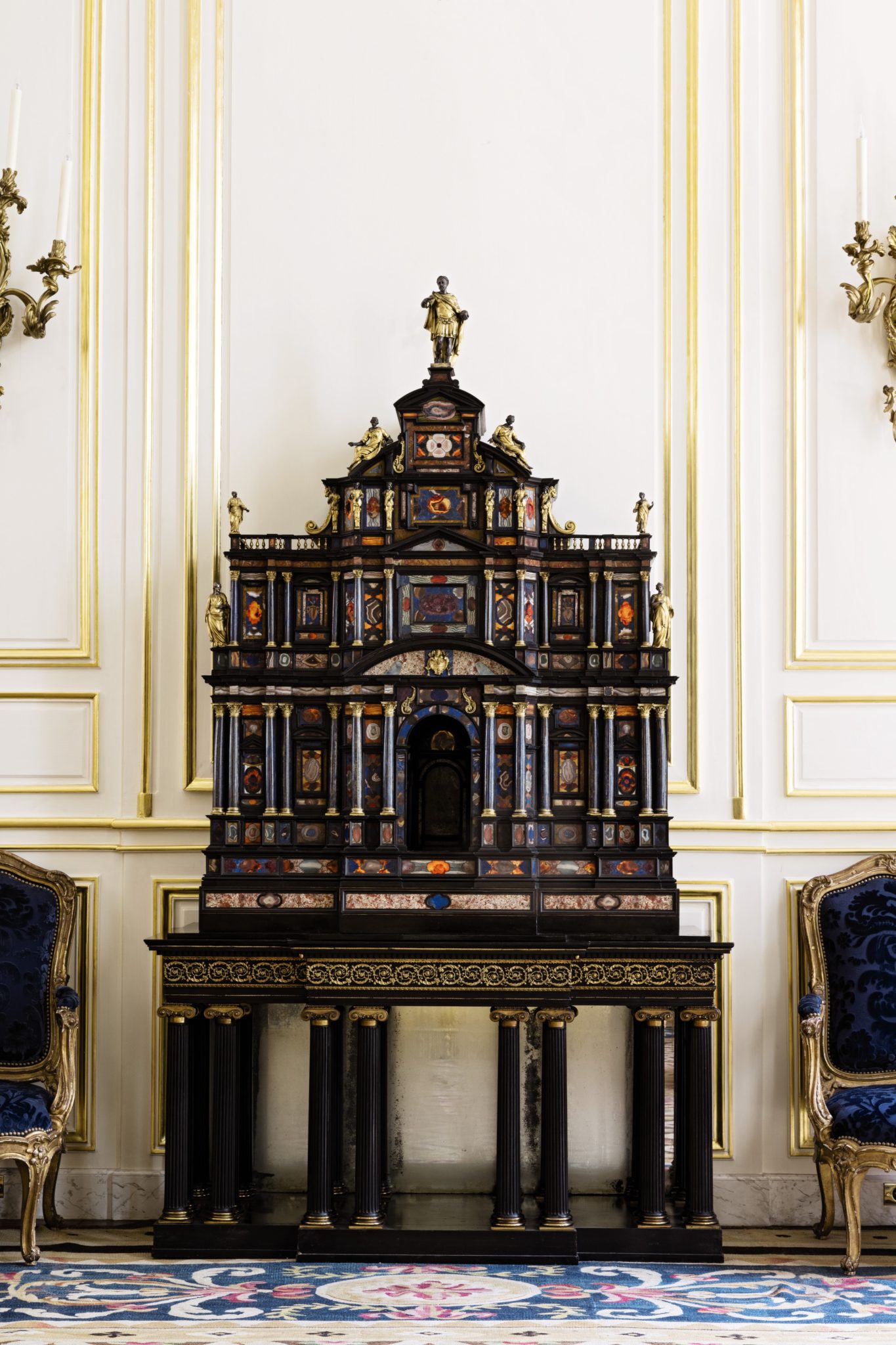 L’armadio è stato realizzato per per papa Paolo V Borghese nel 1620, può essere considerato un capolavoro manierista rimasto nelle collezioni reali inglesi per 135 anni. L’armadio Borghese-Windsor venduto per € 2.499.000 (£ 2.154.493), uno dei prezzi più alti realizzati in un armadio hardstone italiano all’asta. Questo capolavoro manierista è stato il più significativo pezzo di fattura romana ad essere venuto sul mercato per molti anni. Realizzato a Roma intorno al 1620, questo eccezionale bronzo dorato montato in argento, ebano e armadietto pietra dura vanta una provenienza eccezionale, dopo esser stato appartenuto a Papa Paolo V Borghese (1605-1621), fu acquisita nel 1824 da re Giorgio IV che mostrò a Windsor Castello. L’armadio è rimasto nella Royal Collection fino al 1959, quando fu acquistato da Aladar Zellinger de Balkany, su consiglio del suo figlio.