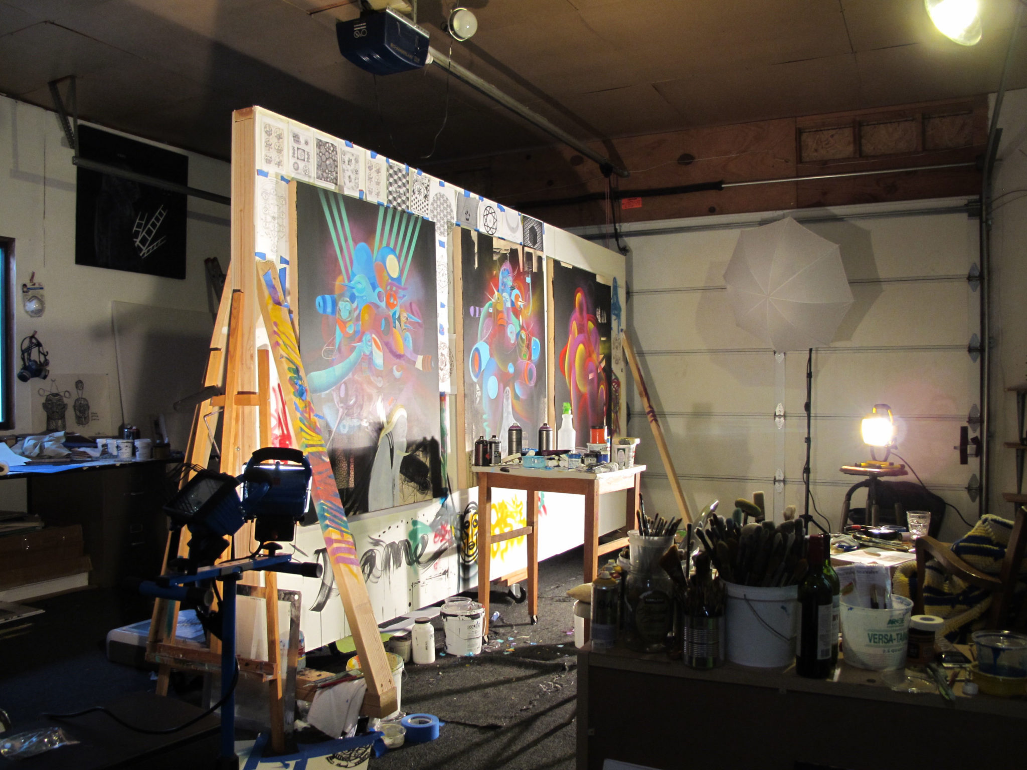 La produzione di Doze Green è legata alla concezione dell’arte come riflesso dell’umanità, della sua condizione, delle sue esperienze ed emozioni. Dalle opere dell’artista emergono personaggi complessi in evoluzione, creati con un tratto lineare e sinuoso e definiti da variazioni cromatiche. Queste “entità biologiche”, come vengono chiamate dall’artista, sono rappresentazioni infinite e variabili del passato, presente e futuro dell’umanità. Affascinato dai concetti metafisici e dal mondo del magico e dell’irrazionale, Doze Green esplora l’anima umana integrando nei suoi lavori simboli occulti, geometria sacra, miti e divinità di antiche società.
