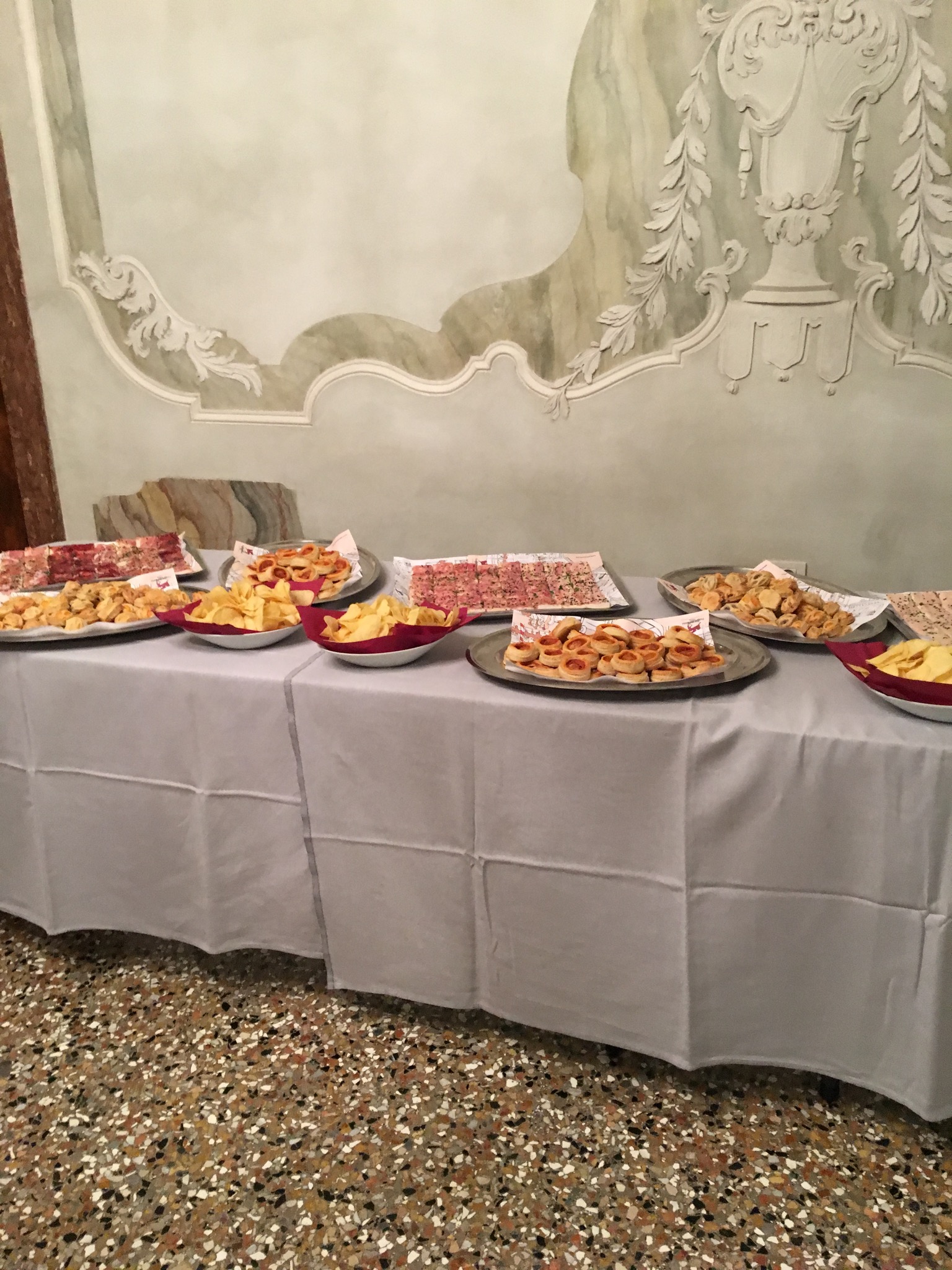 Ah, last but not least, essendosi svolto tutto a partire dalle 13.30, è stato approntato un malinconico buffet dei poveri, buono giusto per una festicciola all’asilo, di cui vi allego la triste foto. Un buon motivo per scappare e rifugiarsi al vicino Harry’s.