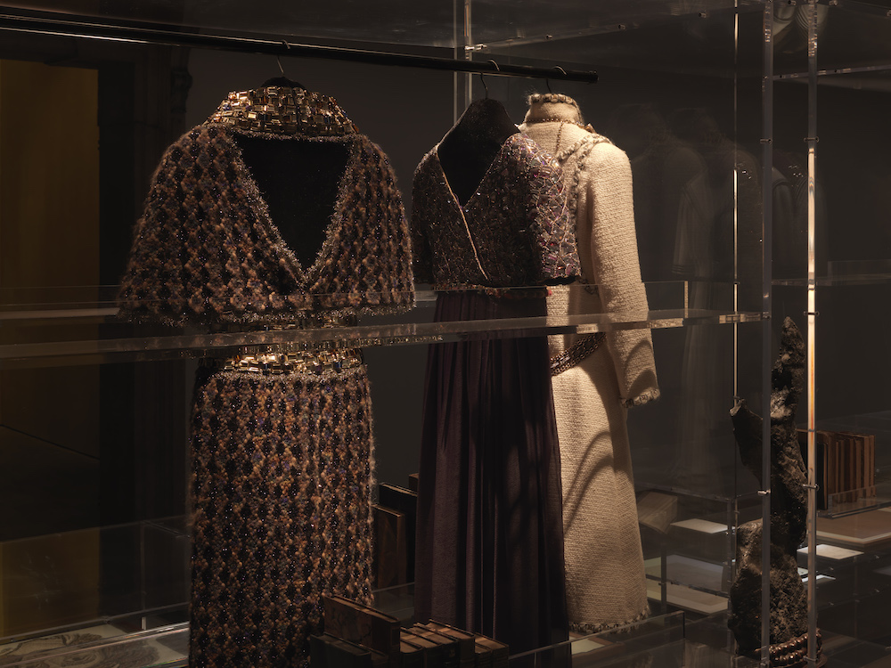 Gli anni dell’infanzia trascorsi nell’orfanotrofio dell’Abbazia di Aubazine, l’interesse per l’astrologia e l’ossessione per la numerologia, il fascino su di lei esercitato dall’arte classica, dai balletti russi, dal Rinascimento, si stratificano nel salone centrale, mentre un’accurata selezione di abiti firmati Karl Lagerfeld – storico direttore creativo della maison -sottolinea la continuità tra passato e presente, tra innovazione ed eredità del talento, della personalità e dell’immaginario di Coco Chanel: la confidente di artisti e poeti, la collezionista, la donna che legge.