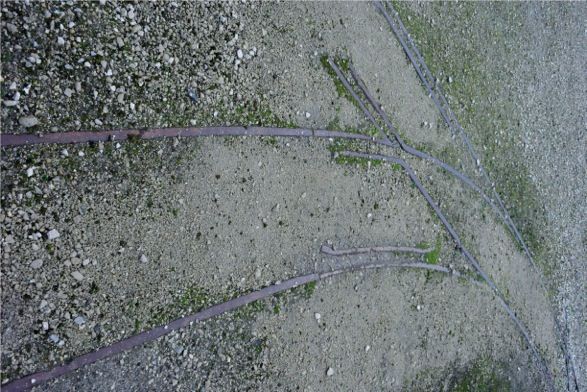 Giovanni Marinelli racconta una storia iniziata nel secondo dopoguerra, una storia di immigrazione, di lavoro, di sotterranei che sembrano avvicinarsi al centro della terra, di carbone che sporca le mani e soprattutto i polmoni. L’artista ritrova reperti sia all’interno della miniera sia all’esterno, nel paese che sembra aggrappato alla piccola collina di Marcinelle. Esce dal cancello che segna il confine tra un dentro e un fuori, tra il lavoro e il riposo. Ripercorre l’architettura urbana delle zone limitrofe alla miniera per poi rientrare, varcare nuovamente la soglia d’ingresso e trovarsi di fronte a un dinosauro meccanico, da capire, interrogare come fosse un testimone utile per un’indagine contemporanea.