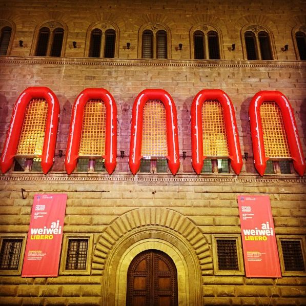 Salta all’occhio, in questi giorni, la polemica sull’installazione sulla facciata di Palazzo Strozzi fatta da Ai Weiwei, artista e fenomeno mediatico, consistente in una serie di canotti (gommoni) appesi a rivestire parte delle finestre del piano nobile dell’antico palazzo.