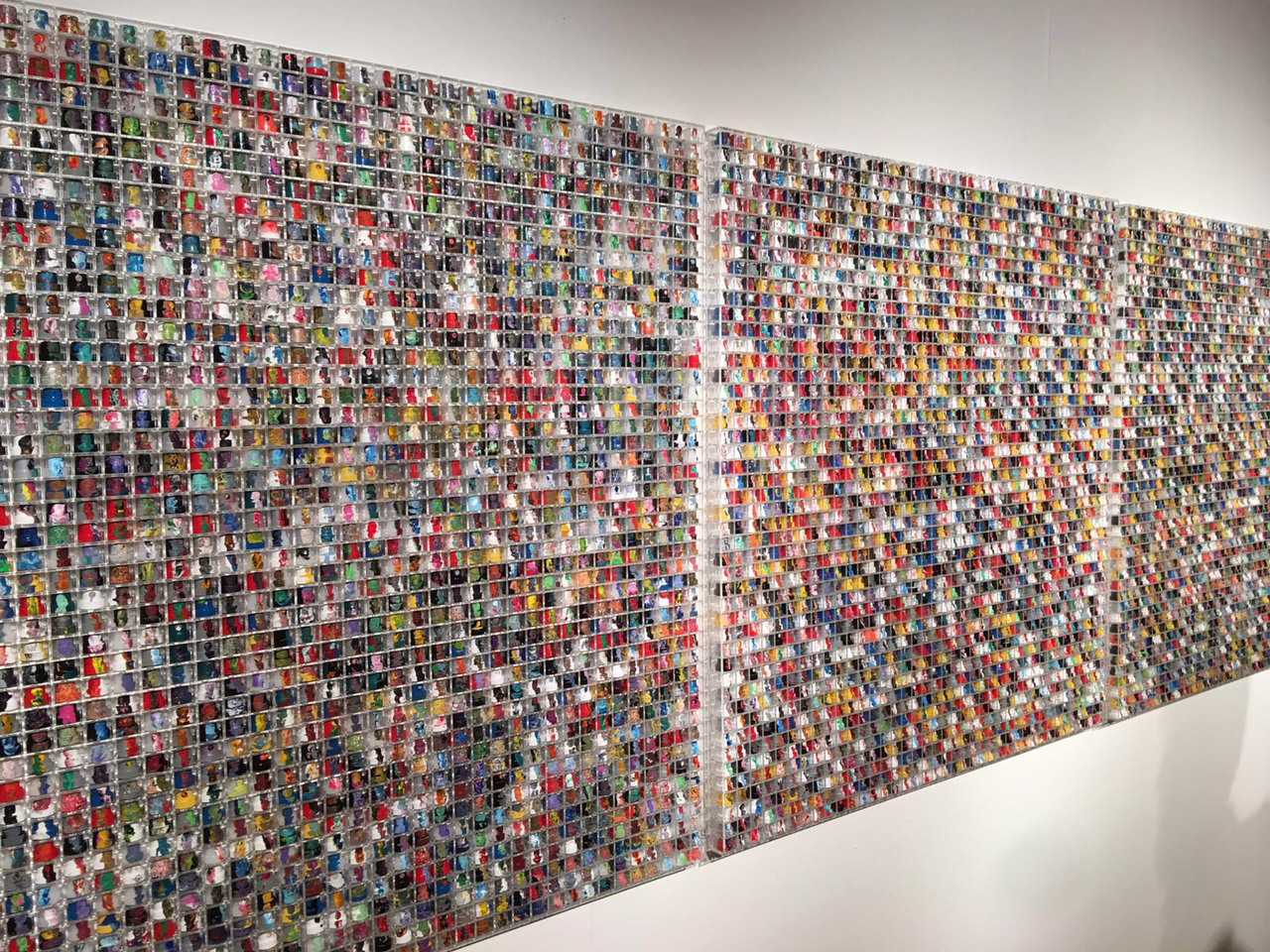 A fianco delle performance, il suo percorso artistico si completa di numerose opere che riflettono maggiormente sulla pittura, che restano comunque nel campo dell’astrazione. Trova anche qui un linguaggio specifico fatto di singoli punti e strisce di colore colanti. Pixel giganti, punti luminosi ottenuti con lo spray, linee ingarbugliate sono il suo repertorio artistico, che dalla Street Art dei primi periodi si sta sempre più raffinando, tanto che gli ultimi lavori sono fatti su carta di papiro di piccole dimensioni.