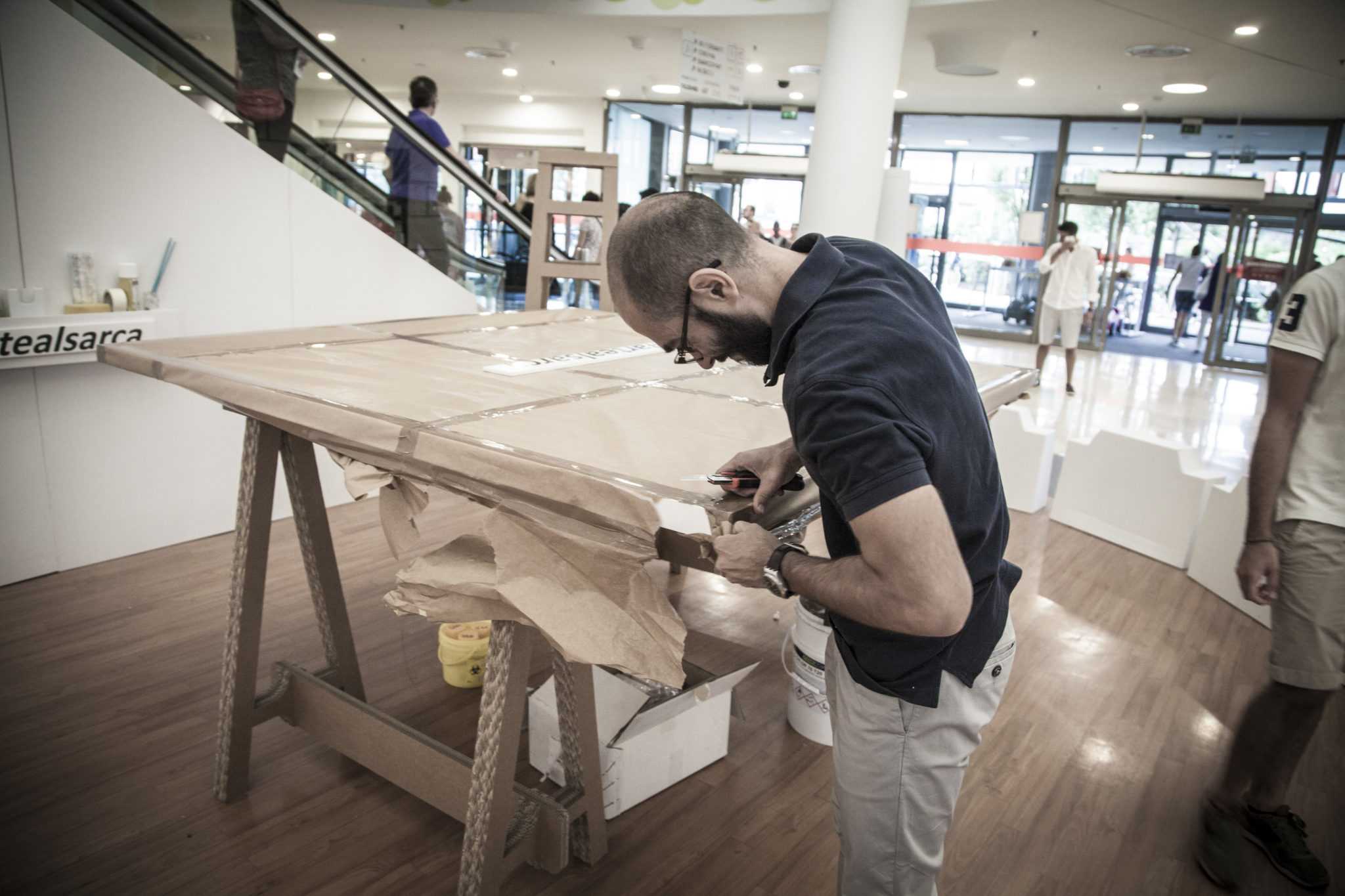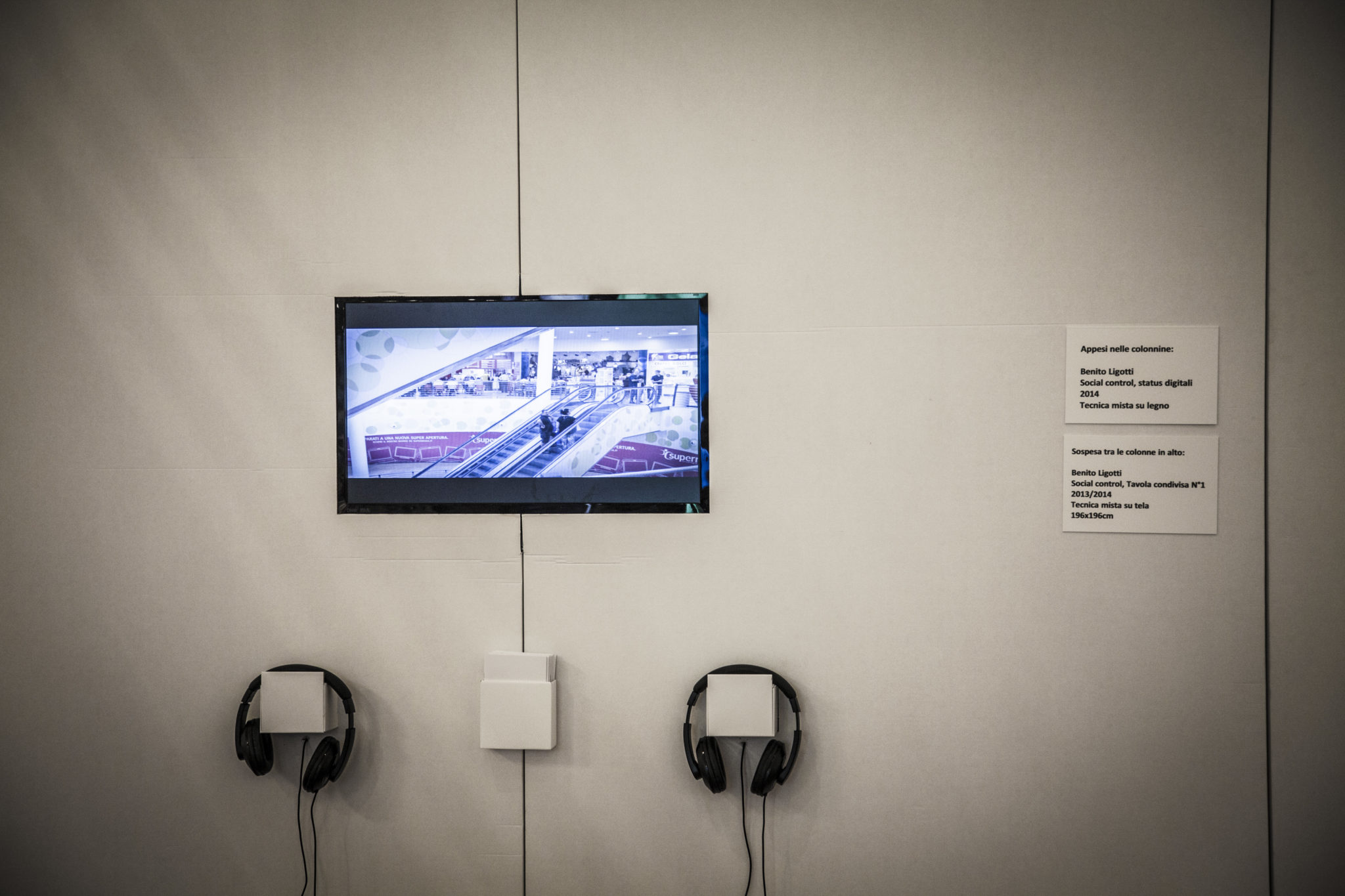 L’installazione propone una selezione di miei lavori del progetto SOCIAL CONTROL con una protagonista incontrastata: la Tavola condivisa n. 1. L’esposizione è stata studiata in modo da dare maggiore visibilità alle opere, ma al tempo stesso per riuscire a comunicare la sua natura di progetto in divenire. Un centro commerciale può essere definito un micro mondo, e al suo interno si possono fare tantissime cose diverse… perchè non diventare un’opera d’arte lasciando la propria impronta?