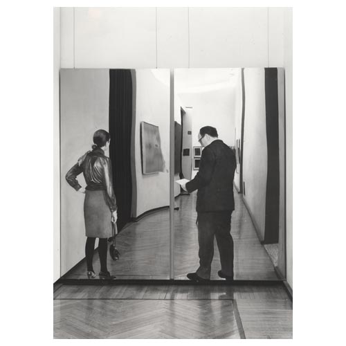 Il mio gallerista di allora non ha apprezzato molto il quadro specchiante e ci rimasi molto male. Partii quindi per Parigi e per New York dove ebbi la fortuna di essere apprezzato da Leo Castelli che mi fece entrare nella sua galleria nel periodo in cui era in piena esplosione l’arte Pop. Divenni l’unico artista italiano a New York e lì raggiunsi il successo. Intorno a trent’anni. Tuttavia il mio sogno non era il successo ma che ad avere successo fosse la mia ricerca: il passaggio da una forma di pittura statica e inerme ad una pittura dinamica. Era stato anche il sogno del futurismo se vogliamo, introdurre cioè lo spazio – tempo nell’opera. Il quadro specchiante è veramente il quadro in movimento.