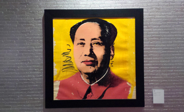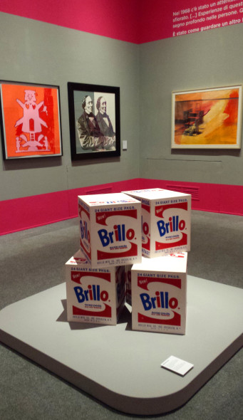 Raffinato e rivoluzionario simulacro. Apparente involucro vuoto. Andy Warhol lavora sull’immagine degli oggetti. Ultima Cena: il sapiente utilizzo del colore serigrafico applicato come una sorta di pellicola avvolge nitidamente l’immagine monocroma, inchiodando nel verde smeraldo il tempo e lo spazio della scena. Le sovrapposizioni della tecnica serigrafica annullano le morbidezze di Marylin. Ne rimane un viso stilizzato. Solo i tratti necessari per il riconoscimento. Idolo e icona. Il soggetto si è oggettivizzato. Serigrafia e una passata di acrilico. Smalti e violenti inserti cromatici. Appaiono drag queen coloratissime. Come i faccioni delle vacche su carta da parati e quelli paciosi multicolor di Mao. Immagini fatte per sedurre, vendere e attrarre. Collage e camouflage. Registrare e riprodurre l’attualità. Warhol arriva a Napoli e realizza la celebre serie di visioni del Vesuvio fumante. Un fumetto. In mostra un trittico occupa tutta una parete dedicata. Sezione “Warhol e l’Italia”. Al centro delle sale delle altre sezioni, brillano le scatole Brillo una sopra l’altra. Una sorta di scultura-monumento alla società del consumo. La magnificazione delle “cose” della vita quotidiana della cultura di massa. Sempre più labile il confine tra sacro e profano. Warhol è credente. Cattolico. Pochi tratti accennano ad una dolce Modern Madonna con bambino. Di fianco, feticismo in tutte le salse. Piedi, scarpe e svariate nudità. Istantanee del proprio essere. Come le novanta polaroid nella Cappella del Doge. Questo è il fenomeno eclettico Andy Warhol. Mille sfumature di Pop in mostra fino a quasi la primavera prossima negli appartamenti dei signori della Superba. Aspettando l’attesissimo biopic in uscita nel 2017 con Jared Leto nei panni del re della Pop Art.