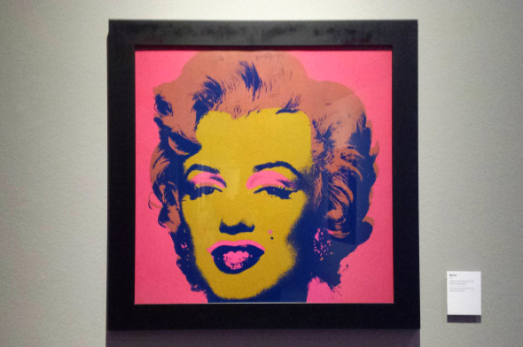 Sei sezioni. Sei linee conduttrici. Sei colori acidi per ogni tematica. Un contenitore più grande di una Brillo Box. Palazzo Ducale di Genova si tinge rosa shocking e giallo fluo, azzurro luccicante e mattoncini argentati. Si riveste di glamour e srotola tappeti ad Pop per accogliere Sua Maestà di questa Art. Centosettanta opere invadono le affrescate sale settecentesche del Doge. Centosettanta tra tele, prints, disegni, oggetti, fotografie che immortalano celebrities, amici, star e starlette della seconda metà del secolo scorso. Decenni dove la televisione -“scatola meravigliosa che fornisce tutto lo spazio che si può desiderare”- domina incontrastata la scena del mondo e determina la vita delle masse. Non si ha più un’esperienza diretta della realtà, ma un’espressione mediata dai mezzi di comunicazione di massa. E’ la potenza dell’immagine. La filosofia di Warhol è una riflessione sull’immagine più che sulle cose. L’immagine sopravvive alla miseria quotidiana. Alla banalità della vita contemporanea si contrappongono le Marylin, i Mick Jagger, i Man Ray, le Jackie Kennedy e le Liza Minelli. Seducenti e sensuali. Morbosamente attraenti. Come le sedie elettriche, gli incidenti mortali e i dollaroni colorati stampati in serie con piccole varianti. Un’operazione di “ripetizione differente” come ci insegna Deleuze, citato nel contributo in catalogo da Freccero. Ciò che è popular viene sparato, moltiplicato e stampato sulla superficie delle tele. E lì, parafrasando Warhol, risiede proprio l’artista americano dalla zazzera biondo platino. “Sono nella superficie dei miei quadri, dei miei film, della mia persona. Dietro non c’è niente.”