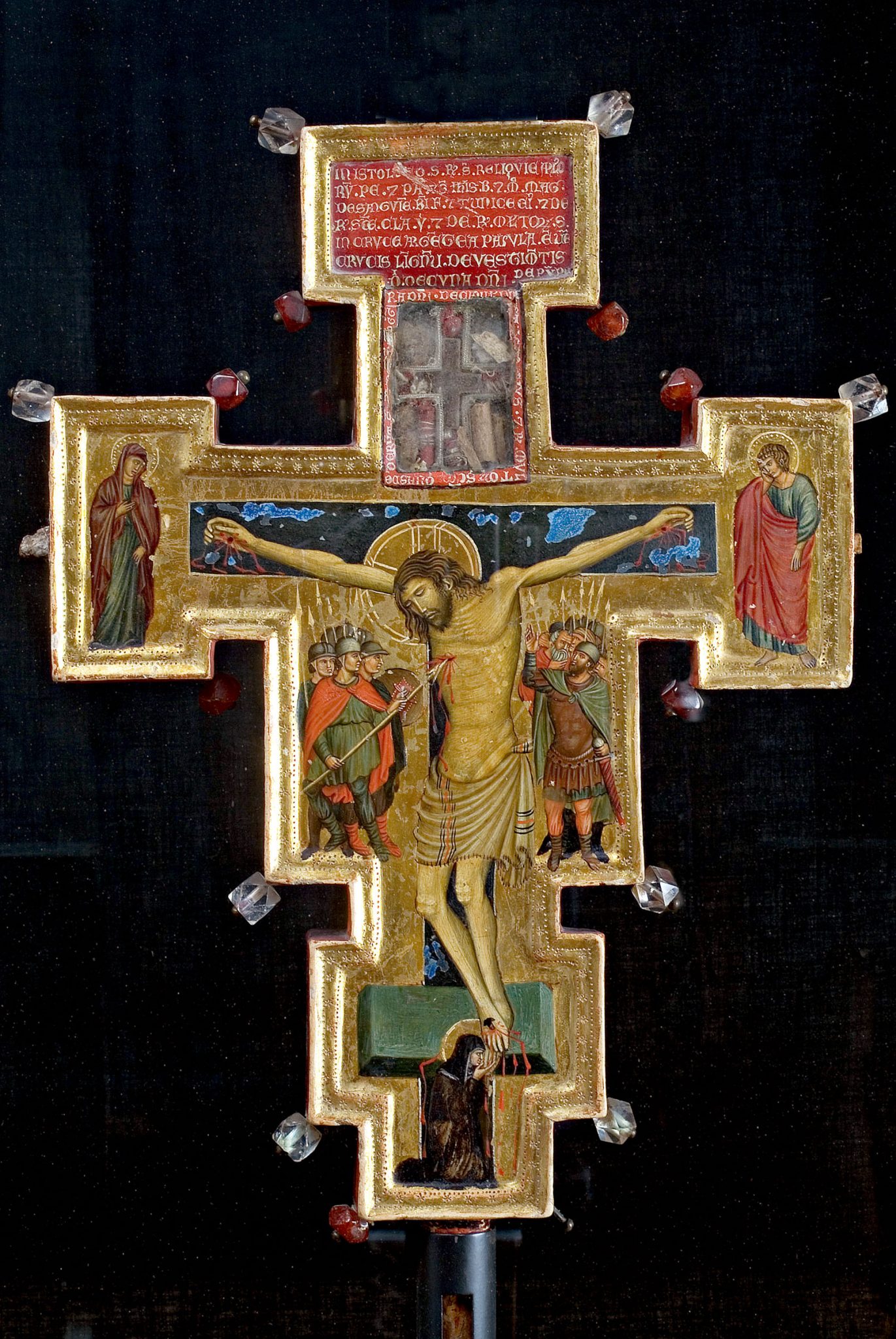 La rassegna offre una panoramica significativa delle particolarità religiose, liturgiche e artistiche di questi manufatti. Alle croci in origine sospese in asse con l’altar maggiore, si accompagnano alcuni esemplari coevi di minori dimensioni, la cui funzione spaziava dalla devozione privata all’impiego nelle processioni (e per questo dipinti da ambo i lati).