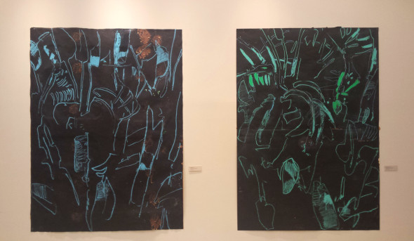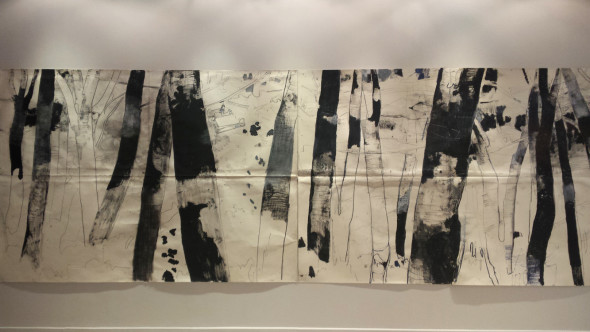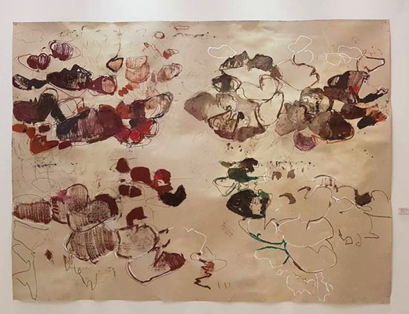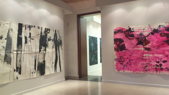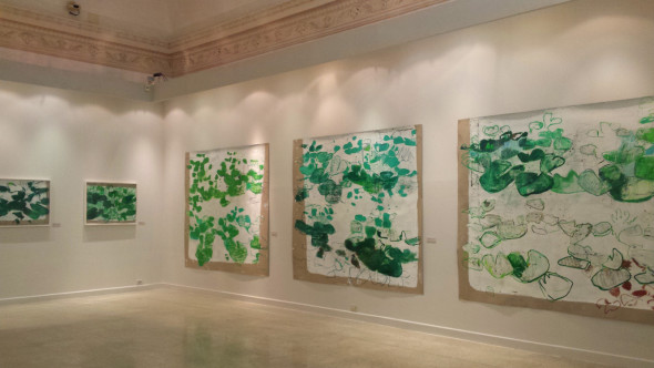 Tra brusio vegetale e fruscio umano. Vista scogliera in travertino della Fontana di Trevi con folla fotografante e adorante annessa. La natura senza tempo di Giovanni Frangi (1959) prospera e si spande al primo piano di Palazzo Poli a Roma, conciliandosi al vocio della vita. Fuori, la calca, il caos. La realtà. Dentro, il silenzio sporcato piacevolmente dalle cascatelle barocche disciplinatamente in festa. Un’altra dimensione. Sospesa. Materializzata e impressionata sulla fragile carta. Riflessioni e affinità corrono e colano dall’acqua cascante alle gittate di acidità sciolte sullo spartito regolare dei tronchi. Lampi di rosa risolvono la pace del fittone. Il segno diluisce e si dilata. Si accendono rossi, rosa e magenta. Stati cromatici del modus mentale del pittore, coltivatore e indagatore di cicli, filtrati e tradotti dalla propria stratificazione temporale. Memoria sedimentata. Momenti e tempi di colore. “Settembre” è la mostra, fino al sette novembre. “Trevi” il titolo delle nuove ninfee, ispirate alla visione del caos antistante, accordato alla pacifica serenità delle acque traboccanti la piscina di pietra. Luoghi e atmosfere che si combinano e dispiegano tra loro. Riaffiorano gli arbusti, le foglie, gli stagni. Ritornano le giungle, le foreste, i boschi. Scandisce il tutto la sinfonia del segno che fa frasca, fronda, fusto. Nude colonne. Tronchi. Si ergono sopra le rovine. Si alternano alle liquidità della Fontana da basso. È settembre, qualsiasi settembre. Quello appena passato, quello che è stato, quello che sarà. Il ciclo delle stagioni. Natura naturante. Flusso costante. Come l’olio che impiastra il pastello. E viceversa. Colature. Compenetrazione di due materiali su supporto leggero. La carta, le grane profondamente differenti che si attivano nel lavoro di Frangi. Foglia su foglio. Scelta calibrata per il contenitore: l’Istituto centrale per la grafica. Tempio del disegno e del supporto cartaceo. Fogli piegati e assemblati che raccontano foglie perse nello stagno pittorico-astrale. Tra i pigmenti si accendono distese di solitudini organiche. Più o meno abbozzate. Non è importante. Incise e potenti. Tracce vangate dalla e nella forza del segno. Tracce dove scivola il pastello. Bianco, arancio, verde. Ricompaiono e riprendono sostanza gli spazi e le forme. Siano ninfea o pietre della Fontana che si arrampicano come scogliera sul Palazzo. Urpflanze è matrice comune. Il segno è origine. Il fondo si raffredda nella temperatura del nero. Esotico. Mediterraneo. Classico. Lombardo. Naturale. Atemporale. In bilico tra figurazione e trasfigurazione. “Antigua” agli antipodi che si “parlano” nella notte dei tempi. Ai fianchi: una successione serrata di “Masua” conduce a questi, “Notturni”. L’ultima stanza, la terza, è risoluzione: “Ninja” con l’inserto a palettate bianco dagli echi pop Sessanta Schifano. Schermi. Cartone. La carta si fa grezza e la ninfea si appropria prepotentemente dello spazio. Straborda. Satura. Il segno fatica a raccogliere e conservare la potenza vitale del fenomeno, manifestazione dello Spirito. Conferisce limite al divenire delle creazioni comprendendole. Demarca. Di fronte: “San Pietro”, l’opera cangiante si risolve tra bruni e brume degli autunni. Pieni e vuoti. Spazi vegetali sprofondano nel fondo e riemergono. Quattro placche. Un poker di faglie raccolte in un mondo. Il segno compiuto. Maturo. “Settembre” è oramai inoltrato ottobre. Di più. Un tempo non ben definito. Sospeso. Oltre le colonne e gli arbusti. Fuori dagli spazi concreti. Passa e si posa un velo di astrazione. L’acqua è terra. Il calpestio, le orme lasciate volutamente dall’artista testimoniano il passaggio, riportano presto al confuso vociare dell’esterno, alla dimensione reale. Quattro tratti ancora più a terra segnano, siglano l’autore. La sua firma. Una riduzione dell’opera intera. Il segno: moltiplicato, propagato, sbocciato. Determinazione e principio di tutto. “F” + “mezza ninfea” + “mezzo ramo”. Risultato: Frangi.