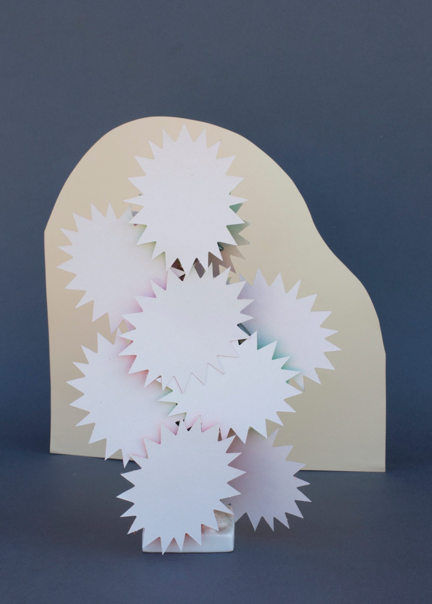 Protagoniste dieci immagini, su ognuna delle quali trapela il delicato e impercettibile tocco dell’artista, che si snoda in una piega, in un’ombra, costruendo un leggero equilibro, come nel metter sù un castello di carte. Lo still life coglie così la costruzione, la composizione e la creazione di un manufatto artistico, e al tempo stesso offre una traccia di una performance estemporanea.