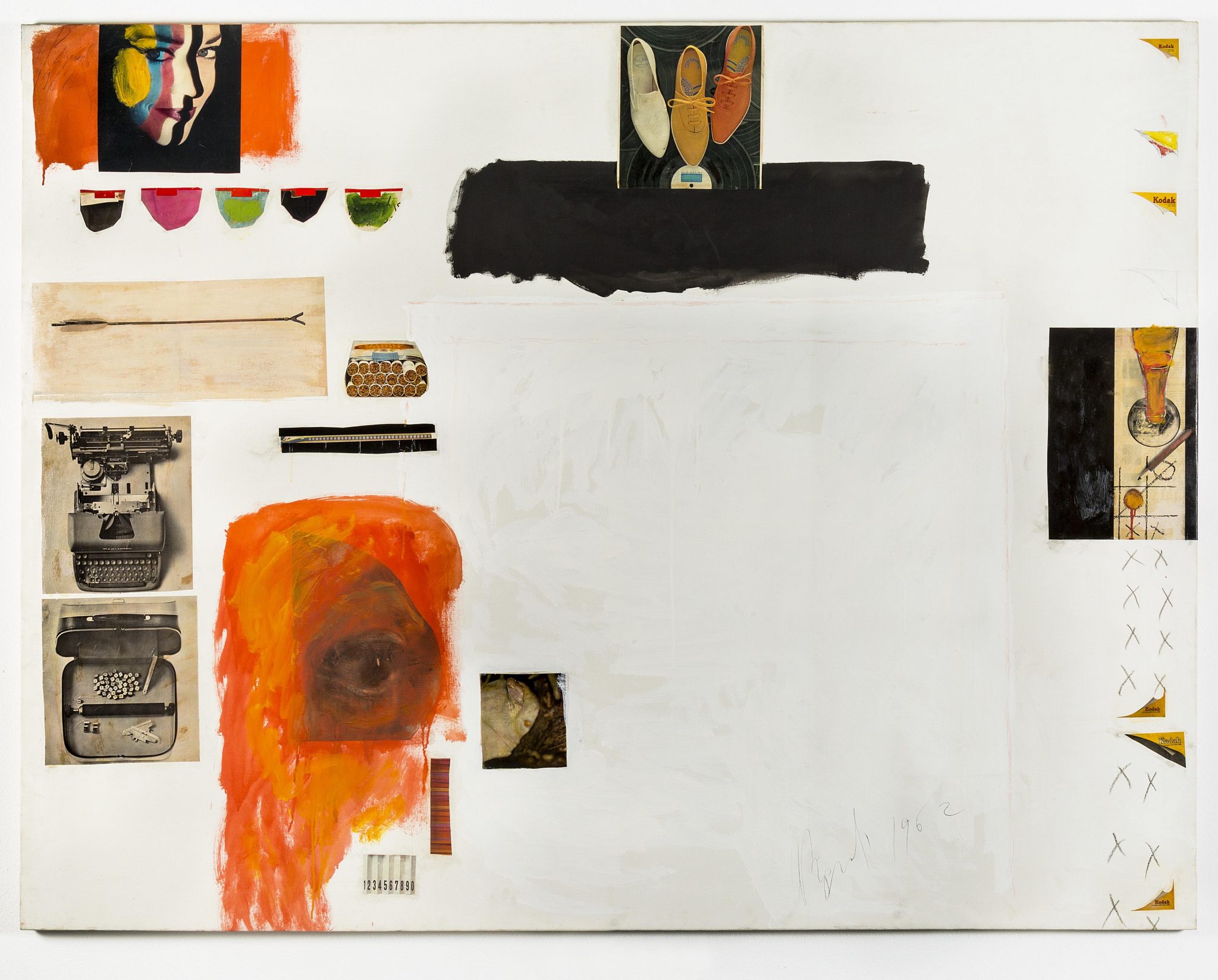 Nato a Bologna nel 1935, Bignardi si trasferisce a Roma alla metà degli anni Cinquanta, e matura il suo linguaggio artistico a contatto con il vivace ambiente romano, grazie soprattutto agli insegnamenti di Toti Scialoja all’Accademia di Belle Arti e al confronto con artisti come Gastone Novelli e Cy Twombly. Di quella stagione giovanile in mostra è presente il grande quadro “Fiora”, del 1959, elaborazione personale delle poetiche del segno e del colore, che è accompagnato da una serie di opere su carta dell’anno successivo, raramente esposte, testimoni del passaggio decisivo verso una dimensione di recupero dell’immagine, proveniente dai mondi diversi della scienza o della comunicazione di massa. Nasce qui la stagione più nota di Bignardi, che in mostra è rappresentata da opere su tela come “L’occhio”, “Allergeni”, “Quadro per bene”, nelle quali è facile comprendere la particolare lettura dell’immagine pittorica da parte dell’artista: grandi campiture di colore fungono da appoggio cromatico ed emotivo agli inserti tratti dalla vita reale, dalle pagine dei giornali, spesso americani, del momento, in un dialogo tra diversi linguaggi che costituisce la caratteristica primaria dell’intera ricerca di Bignardi.