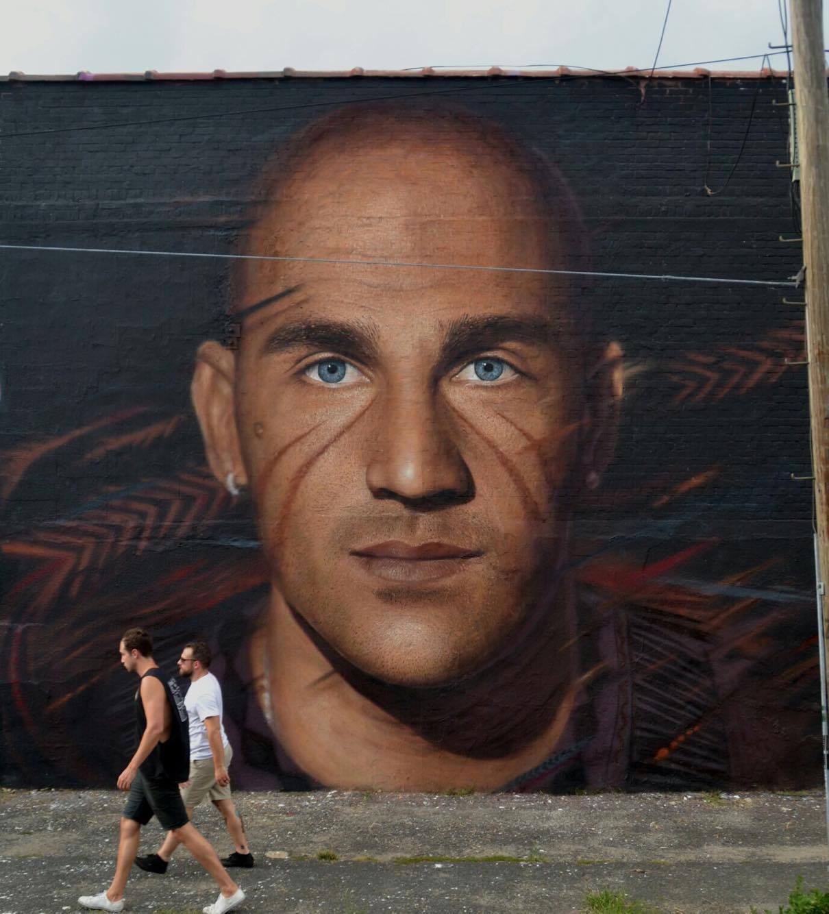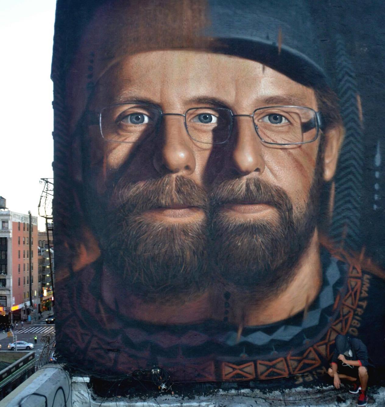 Si tratta di opere realizzate sulle facciate di alcuni palazzi. Non è mai facile lavorare su queste grandi superfici ma mi adatto a seconda delle circostanze. Le opere che ho realizzato si collegano a quelli che sono da sempre i miei obiettivi. Prima di tutto realizzare volti riconoscibili alternati a persone comuni. Ho ritratto il calciatore Paolo Cannavaro ma in un altro murales ho riportato il volto di un ragazzo che conosciuto a State Island. L’alternare opere dedicate a personaggi famosi a persone comuni, significa raccontare la mia idea di umanità. Raggruppando queste opere, crollano tutte queste gerarchie sociali che caratterizzano il mondo contemporaneo, e si racconta solo l’essere umano.