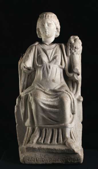 La Bona Dea era un’antica e oscura divinità laziale il cui vero nome non poteva essere pronunciato. Il suo culto – celebrato in una cerimonia notturna agli inizi di dicembre – era prerogativa delle donne dell’aristocrazia romana, con esclusione di qualsiasi presenza maschile, animali compresi. L’unica rappresentazione certa di questa misteriosa Grande Madre che la storia ci abbia consegnato è proprio la scultura posta all’incanto da Bertolami Fine Arts. Per questa ragione, dall’epoca del suo ritrovamento, nell’800, il disegno che la riproduce è sempre stato utilizzato e pubblicato per rappresentare l’iconografia della Bona Dea. Il pezzo entrò subito a far parte della collezione di Ettore Roesler Franz che non volle mai privarsene. Alla morte del famoso pittore sul destino della Bona Dea calò un nero sipario e nessuno ne ha saputo più niente sino a questo suo inaspettato ritorno sul mercato.
