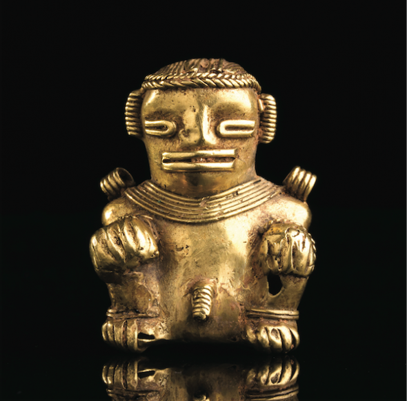Idolo precolombiano in forma di guerriero Colombia, Cultura Tayrona, 1.000-1.500 d.C. Alt. 3,6 cm; 17,46 gr Lotto 93 - € 1.000/1.500