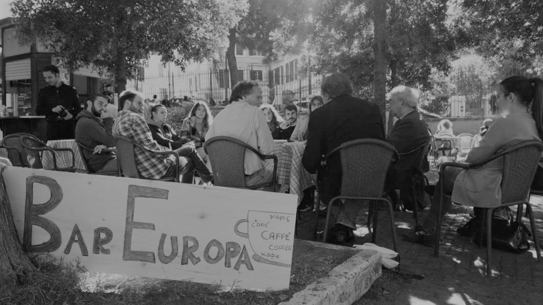 «Bar Europa» è una comunità che si riunisce sotto un’insegna. Una insegna di legno fatta a mano che riesce a rendere qualsiasi posto un Bar inteso nel senso italiano del termine, ovvero come un luogo in cui le persone socializzano, bevono caffé e, come in questo caso, si parla d’Europa.